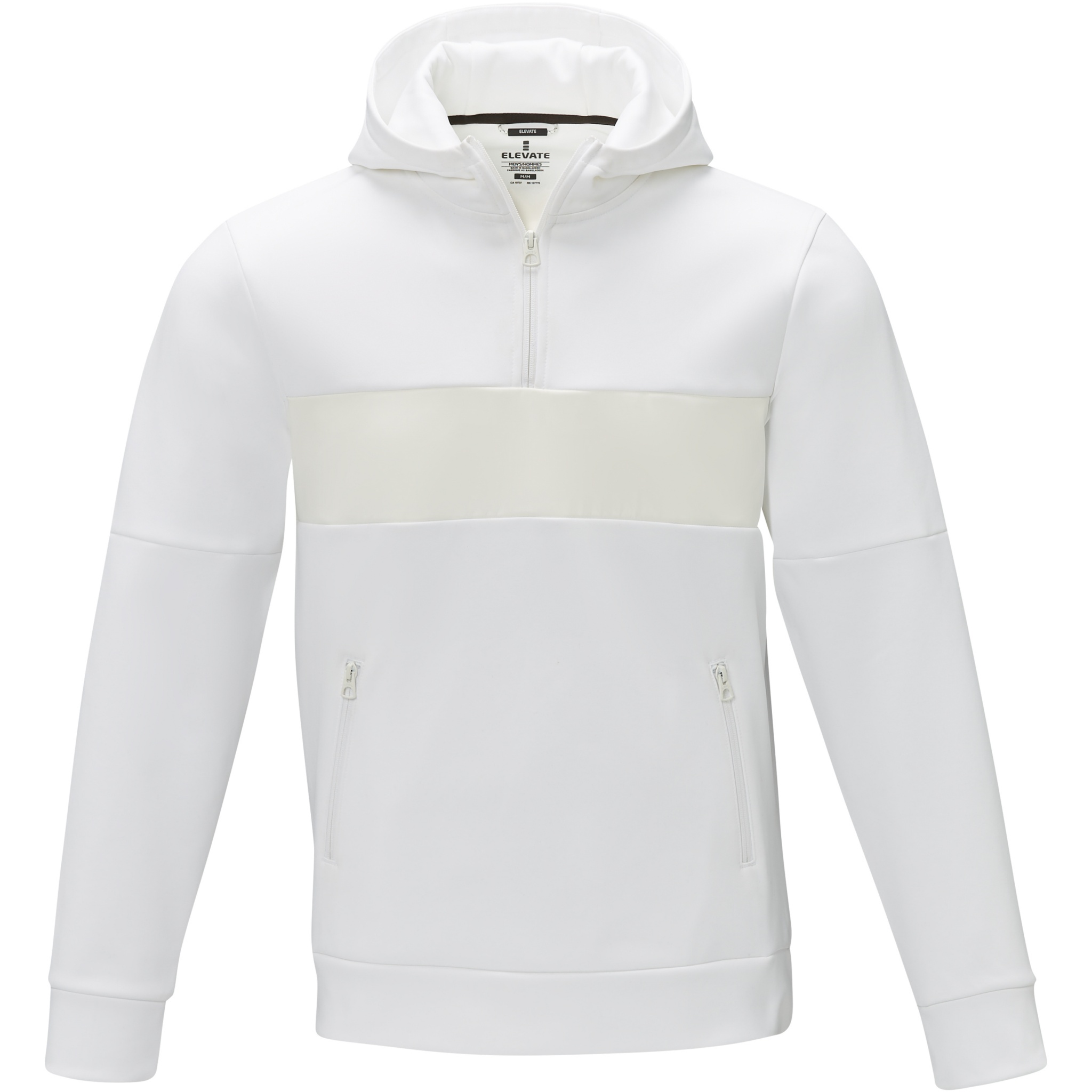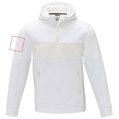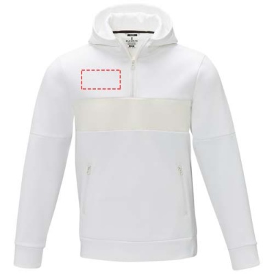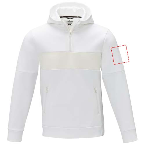 The Sayan men's half zip anorak hooded sweater – a unique combination of performance and style. The anorak design combines fashion and function seamlessly, featuring a quarter zip for versatility in layering. Made from a 350 g/m² blend of polyester and Sorona® knit. The Sorona® fiber enhances the jacket's eco-friendliness by incorporating a sustainable element without compromising on performance. The contrast fabric on the front panel, made of 280T ripstop nylon, adds to the design with its durability and texture and is the ideal location to showcase your brand. Whether you're embarking on an outdoor adventure or simply navigating your daily routine, the Sayan hooded sweater effortlessly combines fashion with function.