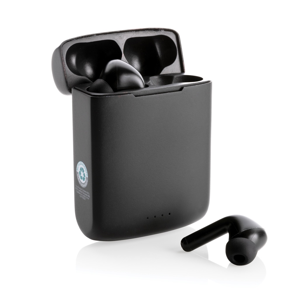 Logo trade promotional product photo of: Skywave RCS recycled plastic solar earbuds