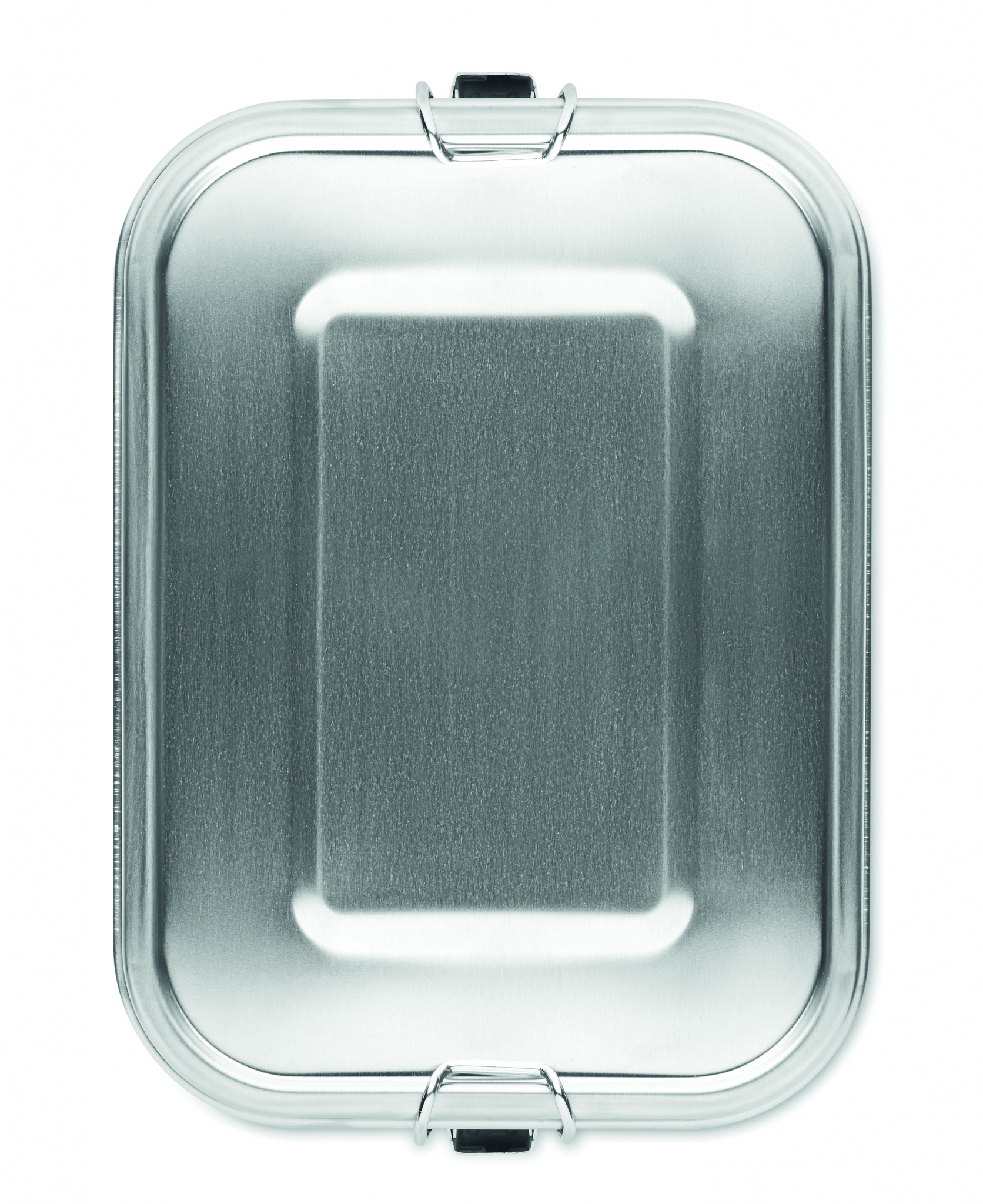 Stainless Steel lunch box with strong and secure side buckles. Including inner divider. Capacity: 1200 ml.