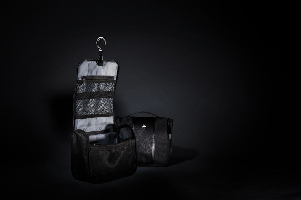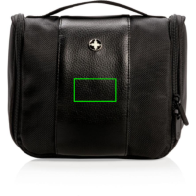 1680D polyester toiletry bag with one main compartment and 4 subcompartments + 2 mesh open pocket 1 mesh zipper pocket inside. Including hook to hang your toilet bag in convenient places.