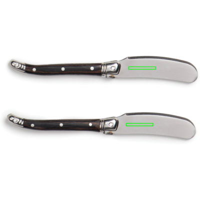 Exclusive 2-piece stainless steel butter knife set. These knives are perfect for spreading butter or jam on toast, bagels, muffins and more. The high-quality stainless steel blades ensure a smooth and effortless spread, while the sturdy pakka wood handles provide a comfortable grip. The set comes packed in an exclusive gift box, making it an ideal gift for any occasion.