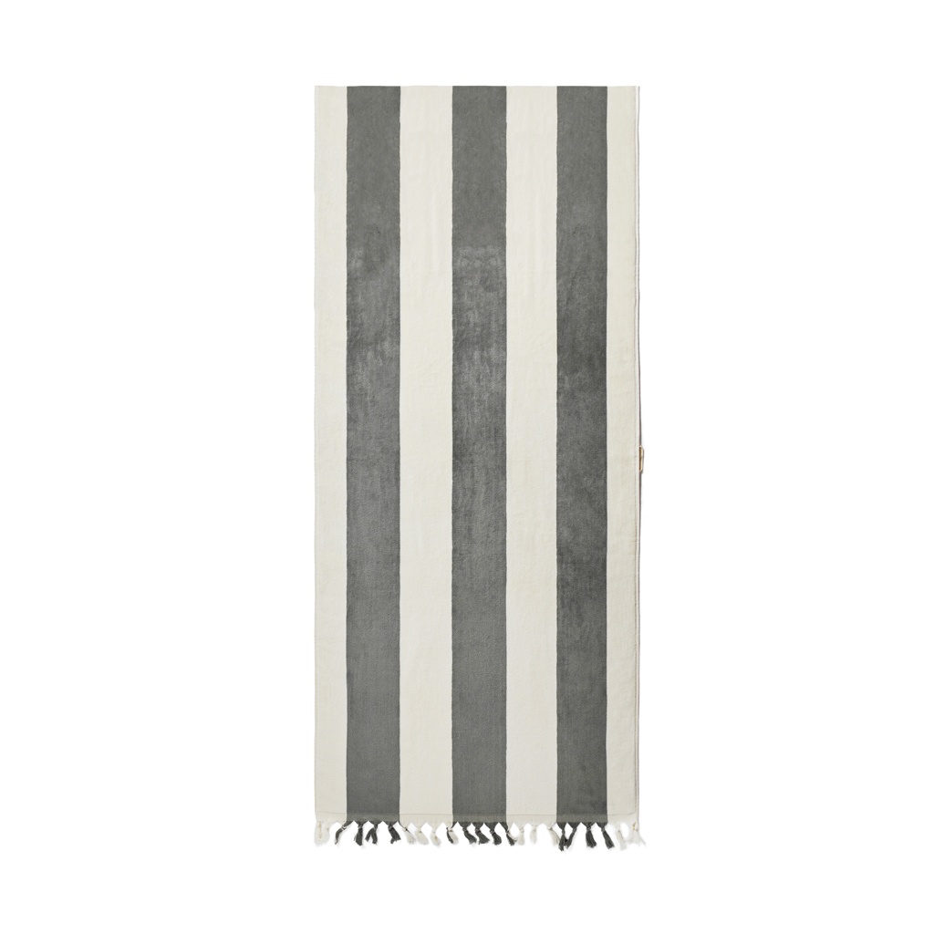 A luxurious cotton beach towel, with tassels at one short end and a lounge chair pocket at the other. Slide the pocket over the lounge chair to keep the towel in place. Our beach towels are made in India with cotton, and have a thickness of 450 g/m2. OEKO-TEX® STANDARD 100. 09.HIN.68091. Hohenstein HTTI.