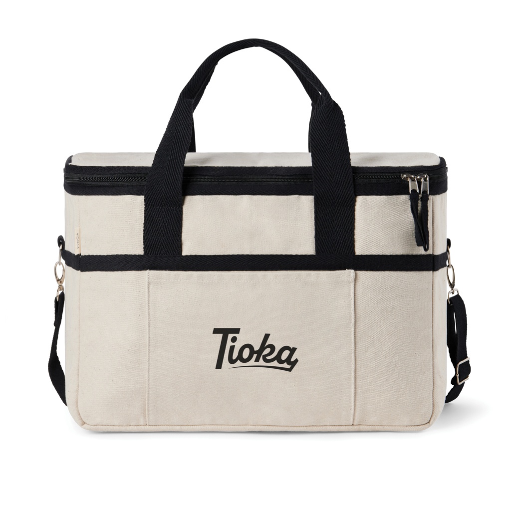 Discover our spacious cooler basket, designed to keep your favourites chilled for longer durations. Featuring an adjustable shoulder strap and robust handles for versatile carrying options. Crafted from 500 gsm recycled canvas. The canvas remains undyed and unbleached, eliminating any environmental impact from chemicals. Crafted from 70% recycled cotton and 30% recycled polyester, this bag reinforces our dedication to responsible sourcing. It also features the AWARE™ tracer technology, validating the genuine use of recycled materials. 2% of the proceeds of each product sold will be donated to Water.org.