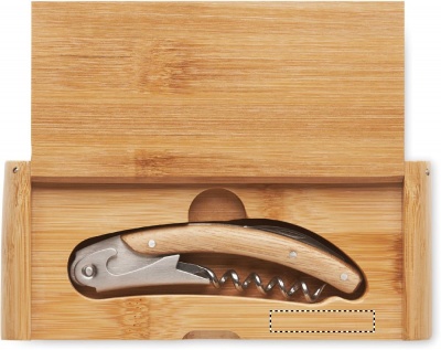 Stainless steel original waiter's knife with double corkscrew opener and bamboo surface. Presented in bamboo giftbox. Bamboo is a natural product, there may be slight variations in colour and size per item, which can affect the final decoration outcome.