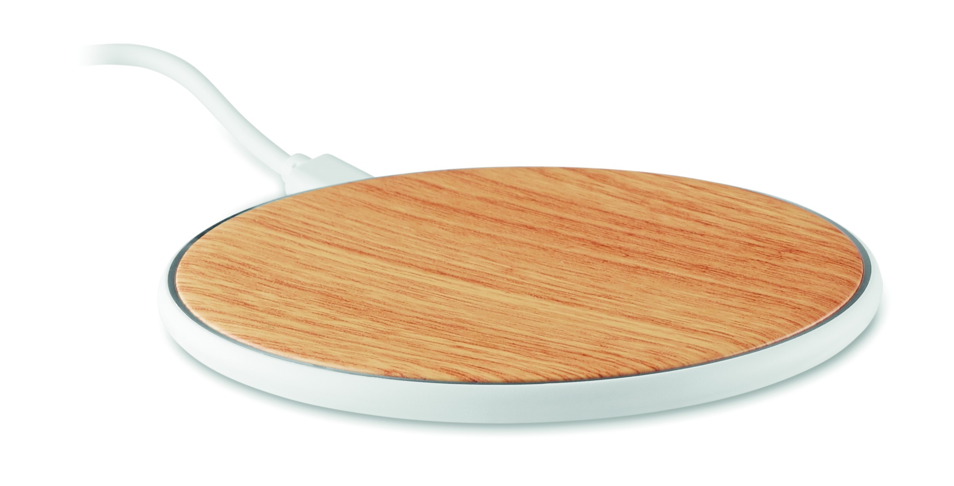 Wireless charger in ABS with bamboo look on the top. Connect device to your computer, place smartphone on it and let it charge. Output: DC5V/1A (5W). Compatible latest androids, iPhone® 8, X and newer. Bamboo is a natural product, there may be slight variations in colour and size per item, which can affect the final decoration outcome.