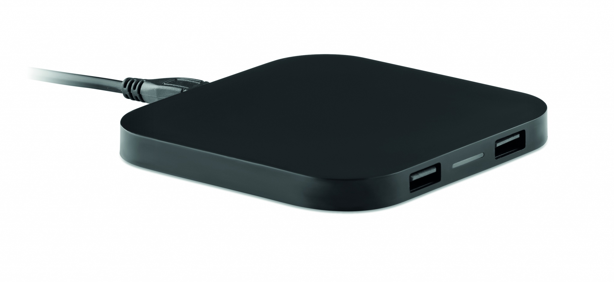 Charging pad with 2 port 2.0 hubs and USB port computer to create wireless charging dock for smartphones. Output DC5V/1A (5W). Compatible latest androids, iPhone® 8, 8S and X and newer.
