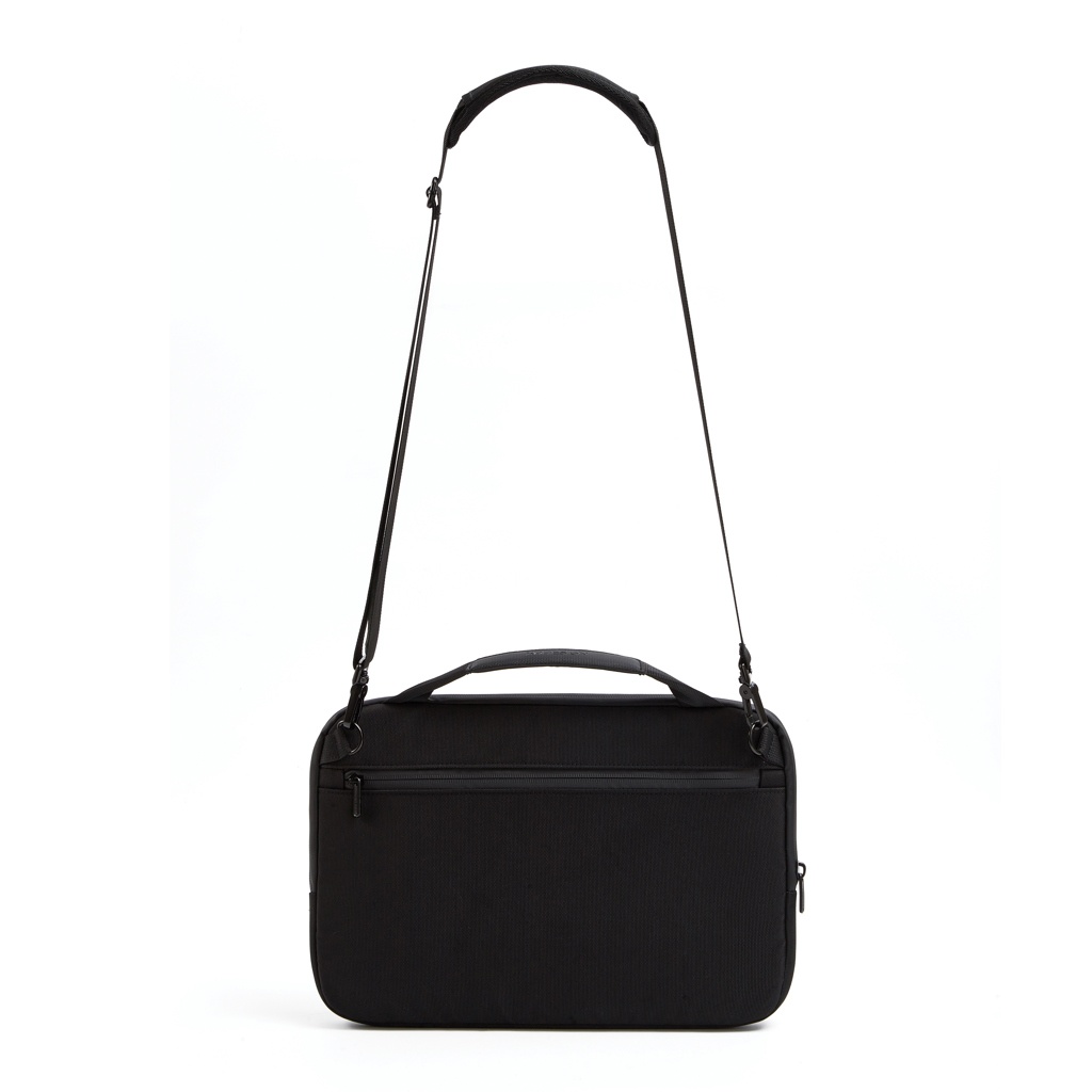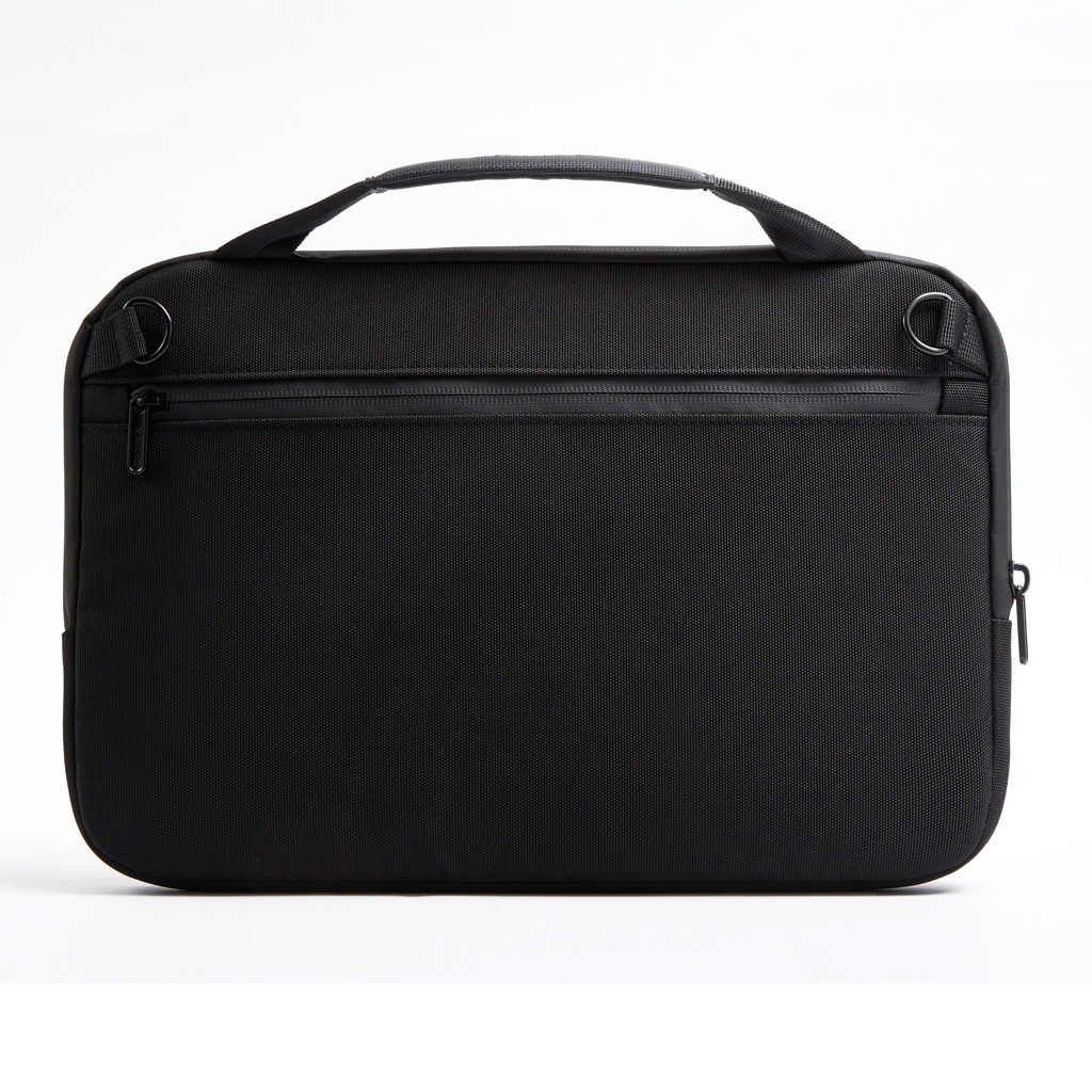 The XD Design 16" Laptop Bag offers reliable laptop protection. Crafted from R-pet 1200D fabric and textured PU, it features a water-repellent finish. The top handle and shoulder strap provide versatile carrying options, while the rear pocket offers convenient storage for essential items. The waterproof zipper and textured fleece lining add an extra layer of resilience. Made from R-pet fabric with the AWARE™ tracer. With AWARE™, the use of genuine recycled fabric is guaranteed. 16% recycled content.