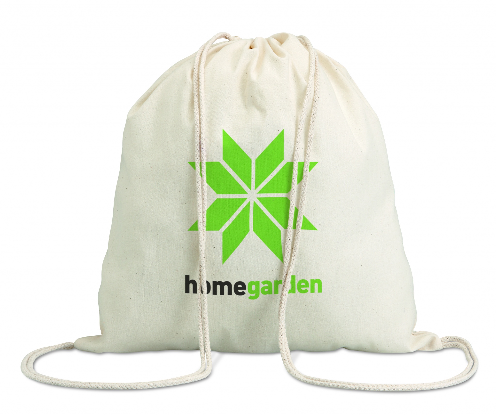 Pingutusnööriga kott 100% puuvillast. 100 gr/m².
