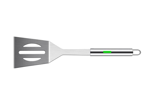 3 osaline roostevabast terasest grillikomplekt koos spaatliga, kaitsekattega nikerduskahvel ja tangid, roostevabast terasest käepidemed. Pakitud käepideme ja hingedega alumiiniumkarpi.
