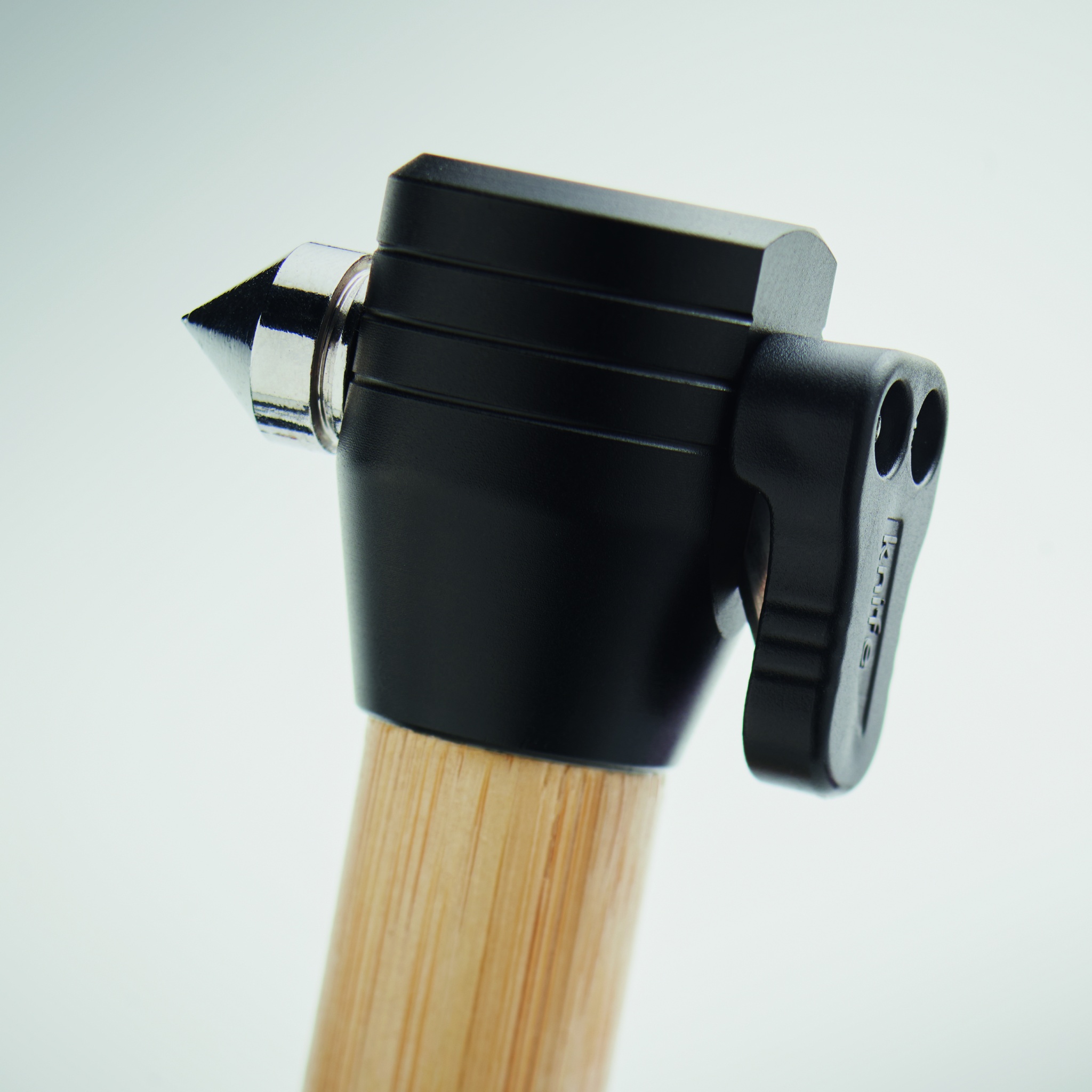 Logo trade reklaamkingi pilt: 3-ühes bambusest taskulamp koos avariivasara ja turvavöölõikuriga