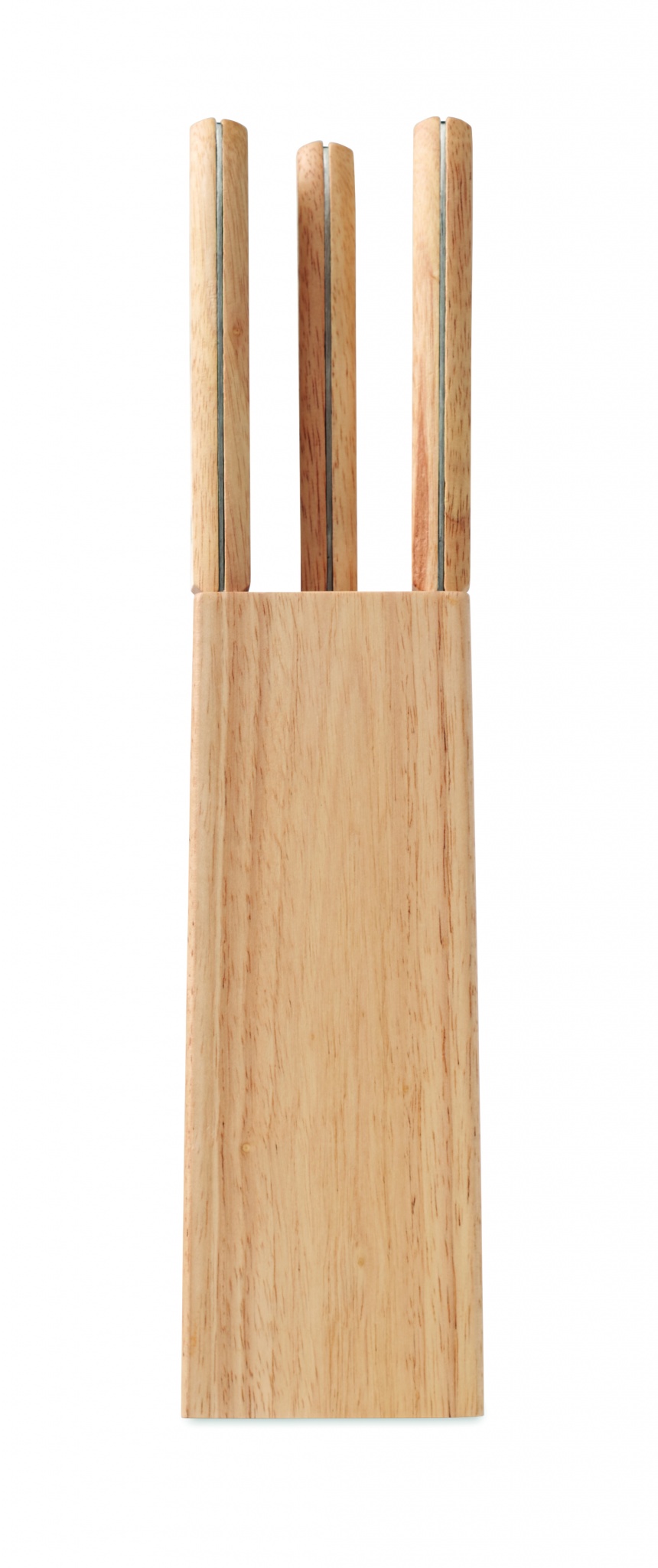 Puidust nugade komplekt. Sisaldab alushoidjat ja 5 nuga: kokk, leib, viilutamine, multifunktsionaalne ja lõikamine. Roostevaba teras puidust käepidemega.