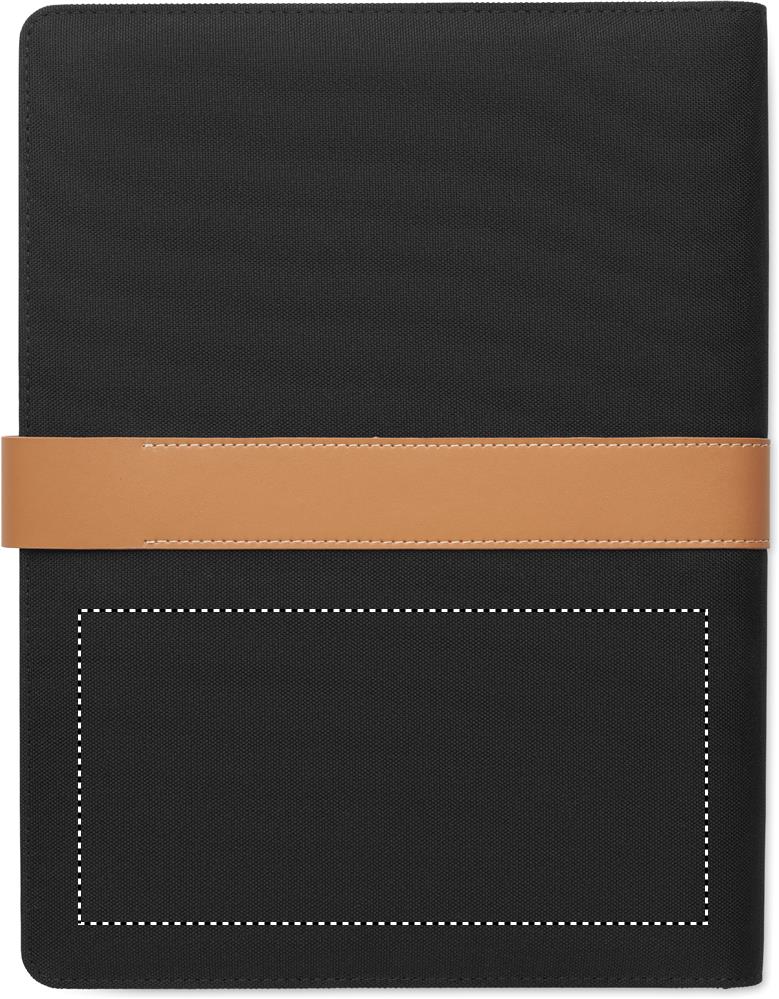 A4 portfell kunstnahast detailidega RPET. Vahetatav A4 märkmik.30 taaskasutatud paberist vooderdatud lehte. Pliiatsihoidja. 4 kaardihoidjat, 3 väikest taskut ja üks suur sahtel. Magnetrihmaga sulgur.