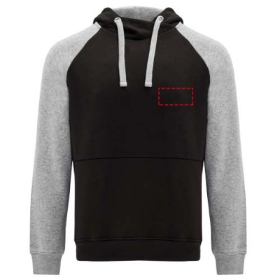 Kahevärviline unisex kapuuts. Ristkaeluse ja metallaasadega kapuuts. Kontrastne sisemine kapuuts, nöör ja raglaanvarrukad. Känguru tasku. Kätised ja alläär 1x1 elastaanist soonikust. Eemaldatav etikett.