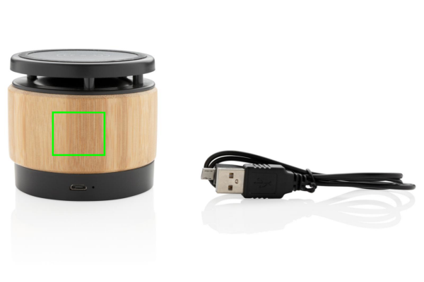 Logo trade meene pilt: Bambusest juhtmevaba laadija kõlar