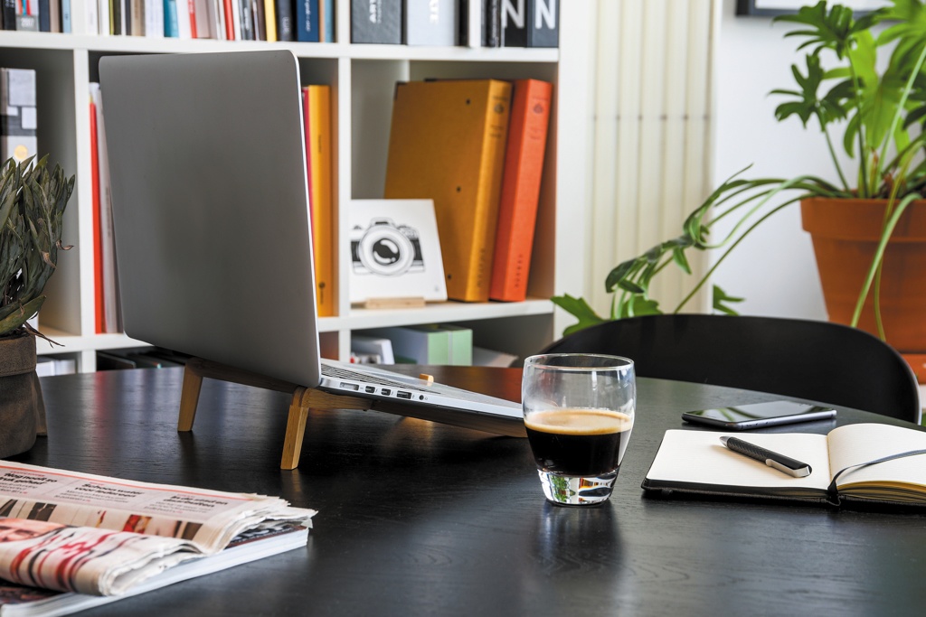 Logotrade firmakingi foto: Bambusest kaasaskantav sülearvuti alus