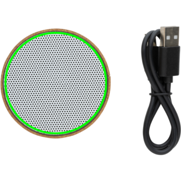 3 W juhtmevaba kõlar, mis on valmistatud FSC® 100% korgist korpusega. Kõlar on varustatud 400 mAh akuga, et tagada kuni 3 tundi esitusaega ning BT5.1 sujuva ühenduse ja selge heli tagamiseks. Kõlaril on sisselülitamisel integreeritud valgus. Ühendusulatus kuni 10 meetrit. Kõnedele vastamiseks mikrofoni ja vastuvõtmisfunktsiooniga. Pakitud FSC mix FSC® karpi. Kaasa arvatud RCS-sertifikaadiga taaskasutatud TPE laadimiskaabel. Toode ja tarvikud 100% PVC-vaba.
