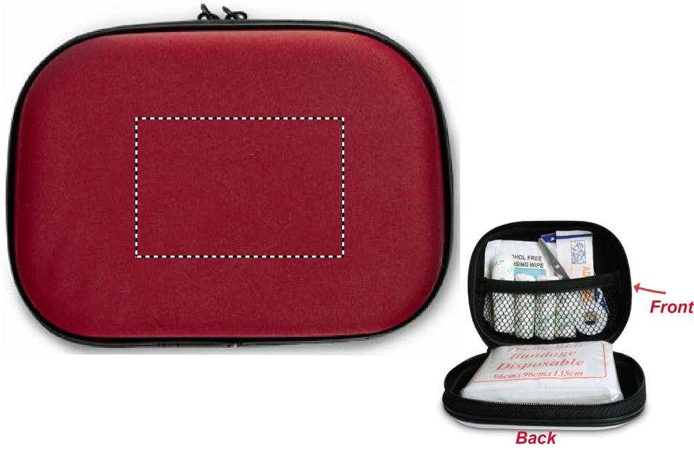 EVA materjalist esmaabikomplekt. Kaasas 1 paar kääre, 3 padjakest, 1 kolmnurkside, 1 rull vati, 2 puhastuslappi, 5 kleepuvat sidet, 1 rull teipi ja 6 vatitupsu.