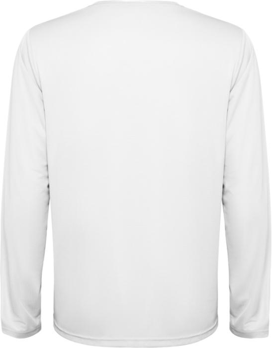 Pikkade varrukatega unisex tehniline T-särk. Sobivate õmblustega krae. Tagumine alläär veidi pikem kui eest. Küljeõmblused nihutatud ettepoole.