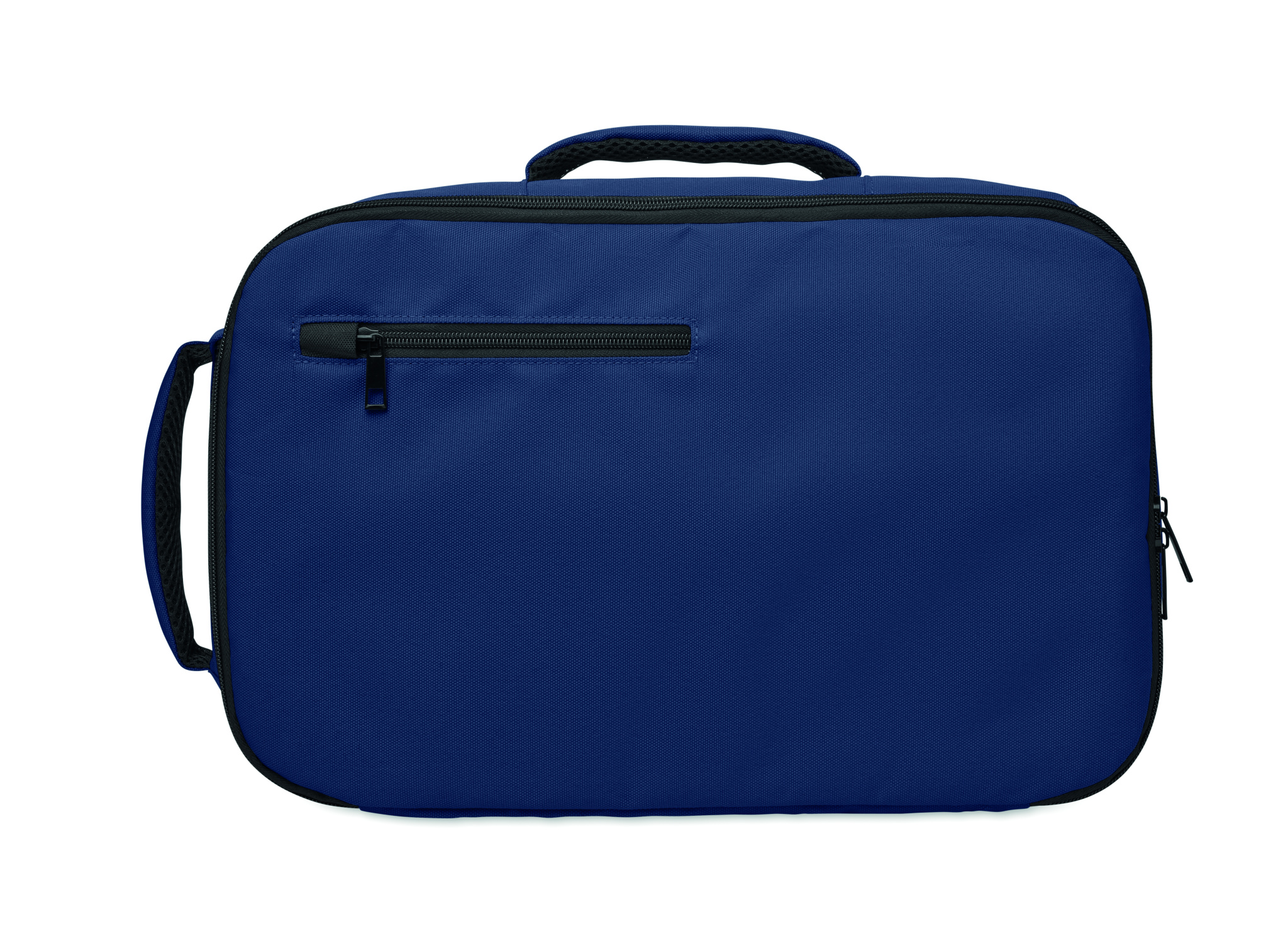 "600D RPET polüestrist valmistatud laiendatav käsipagasikott 180° avausega. Sellel on kahe avatud sektsiooniga põhiosa, võrgust vahesein, polsterdatud 15-tolline sülearvutitasku ja pagasirihm."