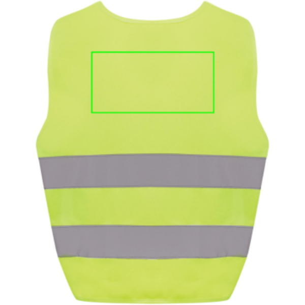 XS-suuruses hästi nähtav vest, mis on mõeldud 3-6-aastastele lastele, pikkusega 90-140 cm. Sellel vestil on ruumi kaunistamiseks nii esi- kui ka tagaküljel. See on varustatud konksu ja aasa sulguritega õlgadel ja allosas, et suurendada ohutust ja hõlpsasti selga panna. Elastsed ribad vastasküljel pakuvad paindlikkust, võimaldades seda mugavalt kanda paksude mantlite peal. Seda vesti on rangelt testitud ja see vastab EN 17353:2020 tüübile AB3. Lisaks järgib see määruses (EL) 2016/425 II kategooria isikukaitsevahendite kohta sätestatud isikukaitsevahendite juhiseid. Valmistatud GRS-sertifikaadiga taaskasutatud PET-st. Taaskasutatud kogusisaldus: 55% eseme kogukaalust. GRS-sertifikaat tagab taaskasutatud materjalide täielikult sertifitseeritud tarneahela.