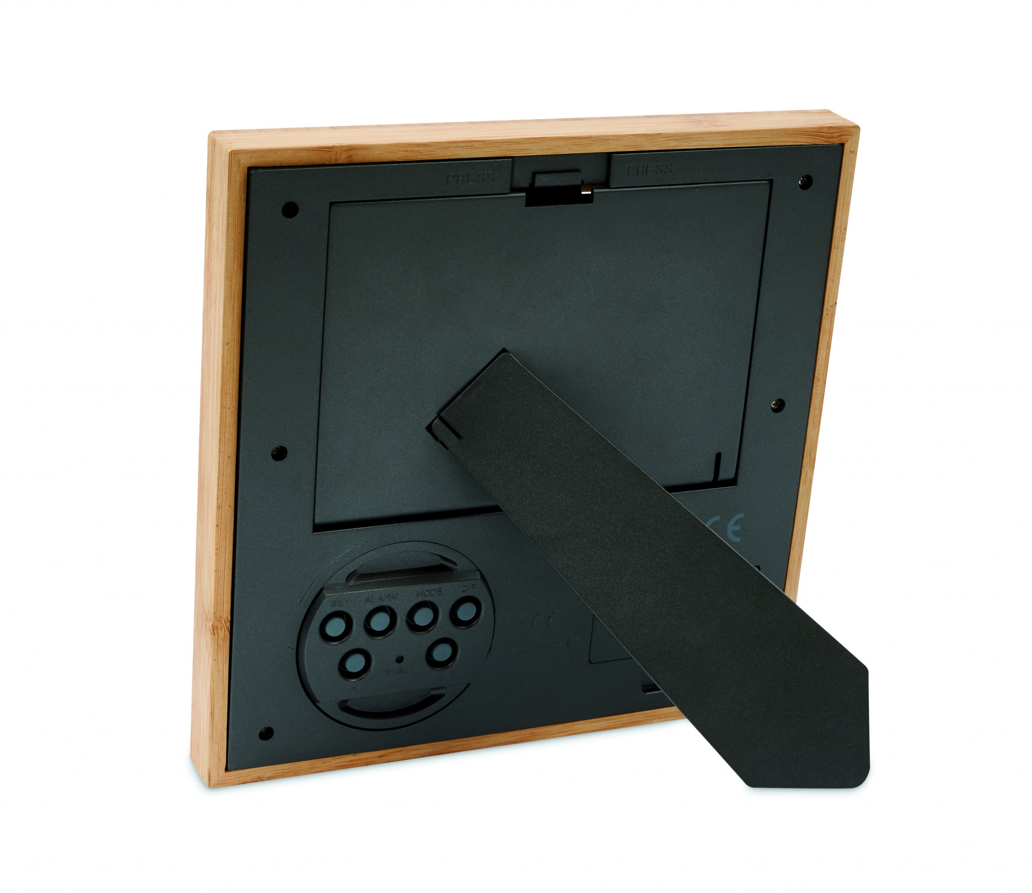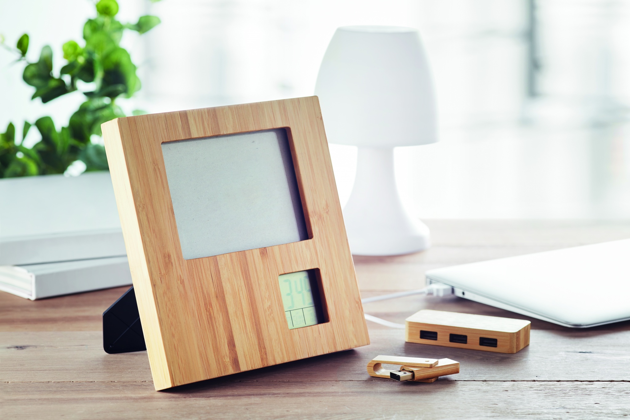 Bambusest pildiraam ilmajaamaga. Näitab kellaaega, kuupäeva ja temperatuuri. Äratusfunktsioon ja taimer. 2 AAA patareid ei kuulu komplekti. Bambus on looduslik toode, ühe eseme värvis ja suuruses võib esineda väikesi erinevusi, mis võivad mõjutada lõppviimistlust.