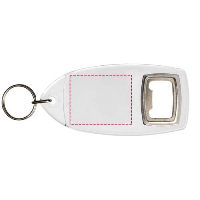 Läbipaistev R1 võtmehoidja pudeliavaja ja metallist poolitatud võtmehoidjaga. Metallist silmusrõngas pakub lamedat profiili, mis sobib ideaalselt postitamiseks. Trükilehe mõõdud: 4,0 cm x 3,2 cm.