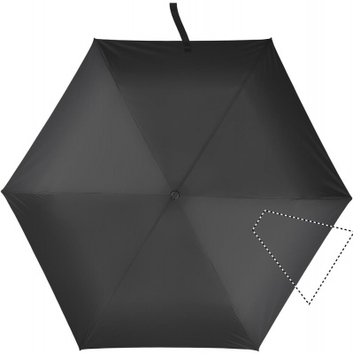 Mini 3-kordne ülikerge (100gr.) 19-tolline käsitsi avatav tuulekindel vihmavari 30D pongee polüestrist musta süsinikkiust varrega. Mustad süsinikkiust ribid ja plastikust otsad. Käsitsi sulgemine. Esitatakse kotis.