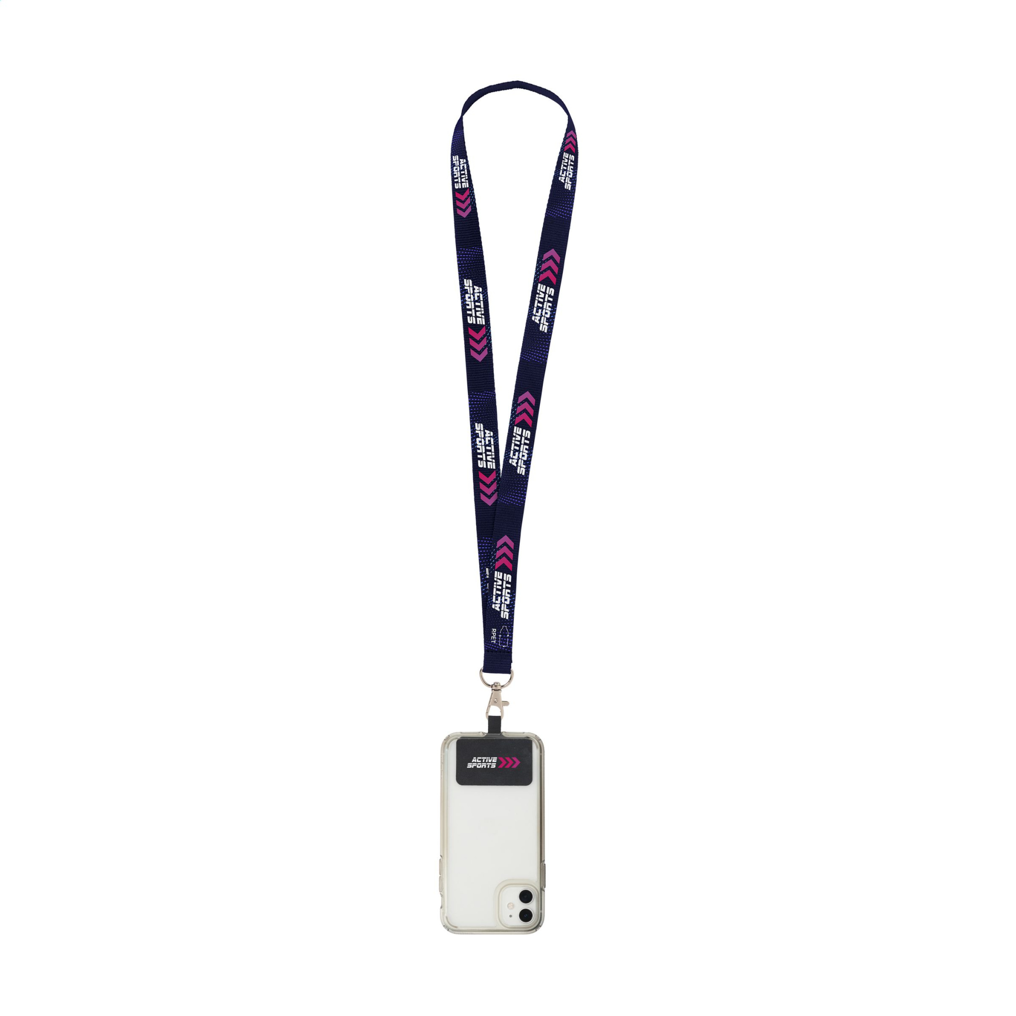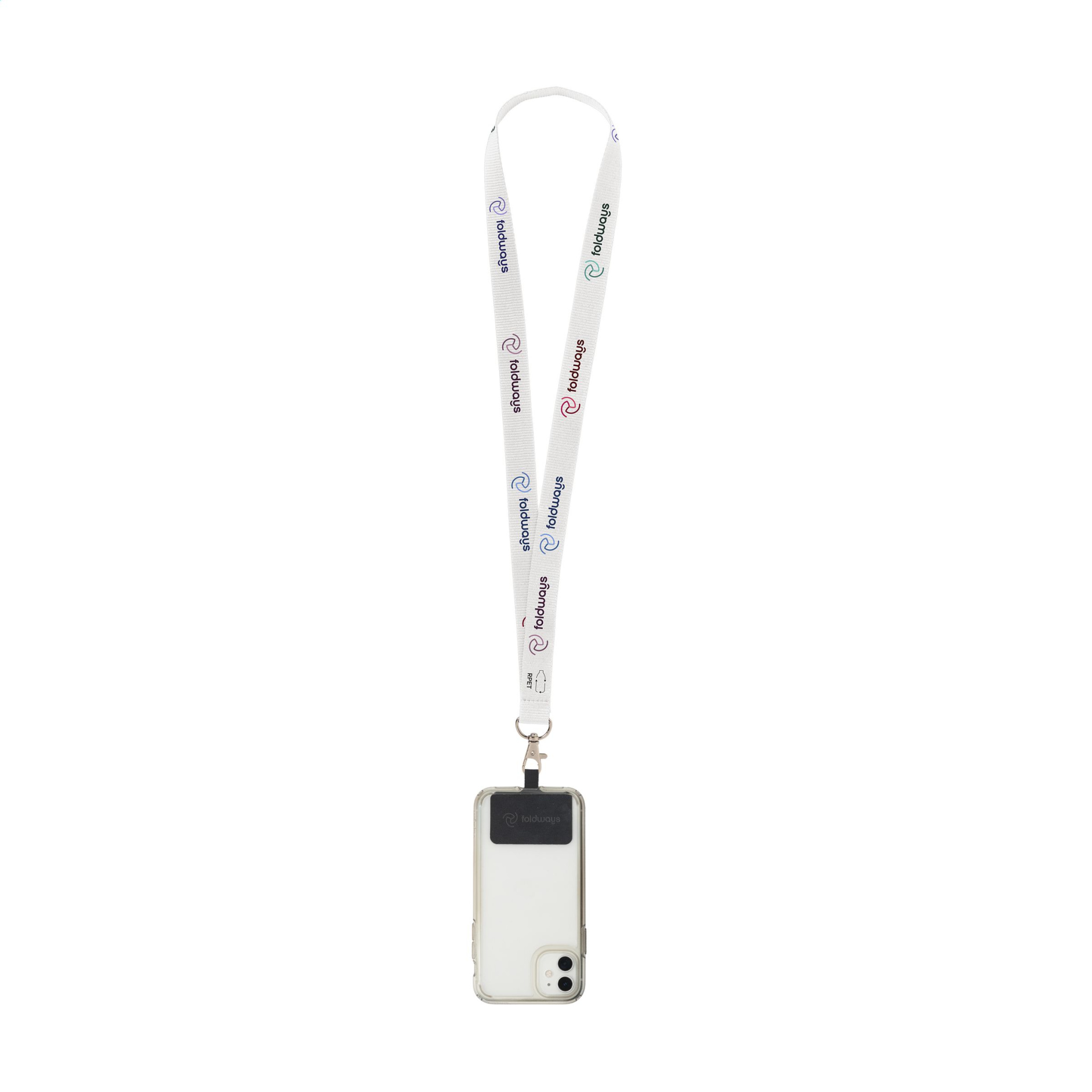 Tugevast kootud RPET-polüestrist (taaskasutatud PET-pudelitest) valmistatud kaelapael. Kaasas metallist karabiin ja universaalne plaaster. Plaaster võimaldab kinnitada nutitelefoni kaelapaela külge. Selle kombinatsiooniga saate oma nutitelefoni turvaliselt kaelas kanda. See tagab, et teil on telefon kiiresti käepärast ning saate hoida oma käed ja riidetaskud vabad. See plaaster ühildub enamiku nutitelefonide ja ümbriste kombinatsioonidega, kuid mitte avatud põhjaga ümbristega. Süsteem on loodud nii, et teie telefoni laadimisport ei oleks blokeeritud isegi siis, kui see on kinnitatud kaelapaela külge. Kaasa arvatud täisvärviline sublimatsioontrükk kaelapaelal. Valmistatud Euroopas.