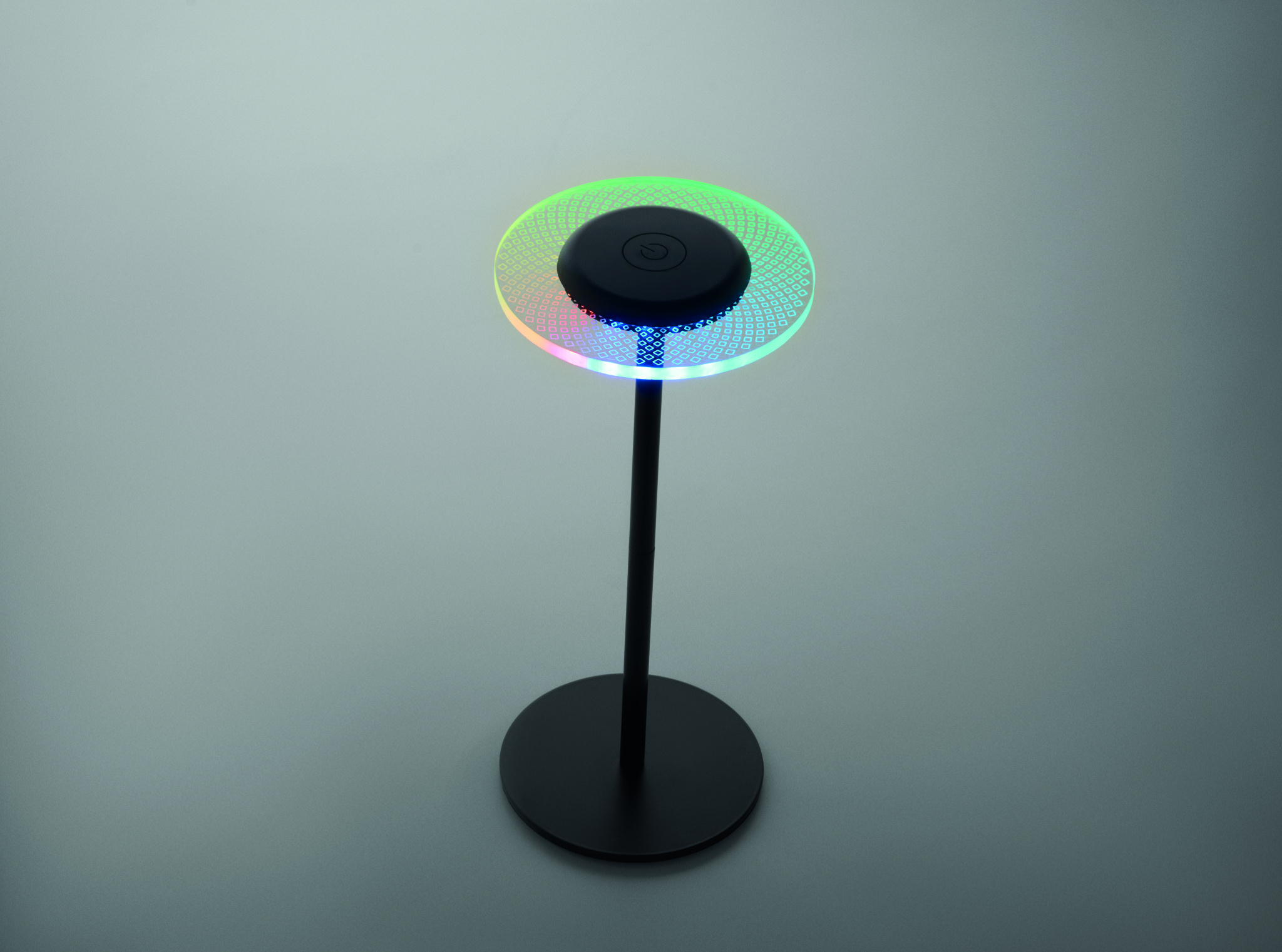 Laetav RGB laualamp rauast korpusega 39 LED-tulega ja astmevaba hämardusega. Sooja või värvimuutva valguse valikuga. Sisseehitatud 2000 mAh aku kestab kuni 6 tundi.