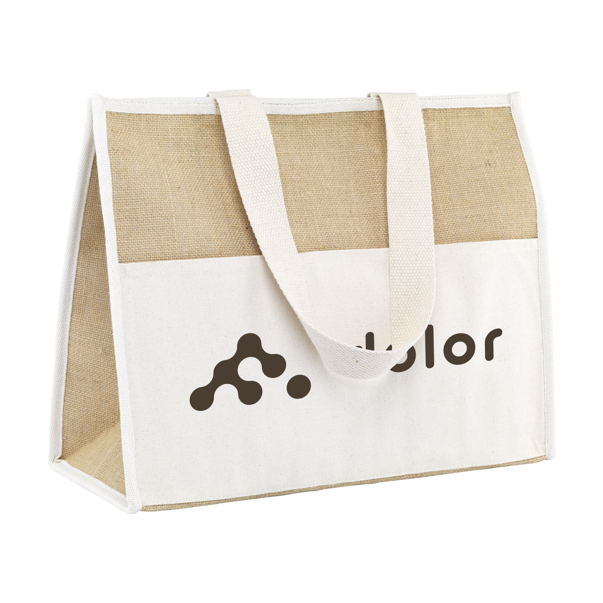 Vau! Mahukas ostu-külmakott isoleeriva, alumiiniumist sisemuse ja takjakinnisega. Ideaalne külmutatud esemete transportimiseks ning sobib ka toitude ja jookide jahedana hoidmiseks päevasel ajal. Tarnitakse naturaalsetes värvides koos tugeva džuudi ja puuvilla materjalikombinatsiooniga. Pikad kootud käepidemed. Velcro kinnisega esitasku pakub täiendavat hoiuruumi. Sobib poekotiks, külmakotiks või rannakotiks. Mahutavus ca. 28 liitrit.