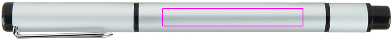 Alumiiniumist pastapliiats, mille vastasküljel on musta kirjaga täidis ja kollane marker. Graveerime teie logo varrele.