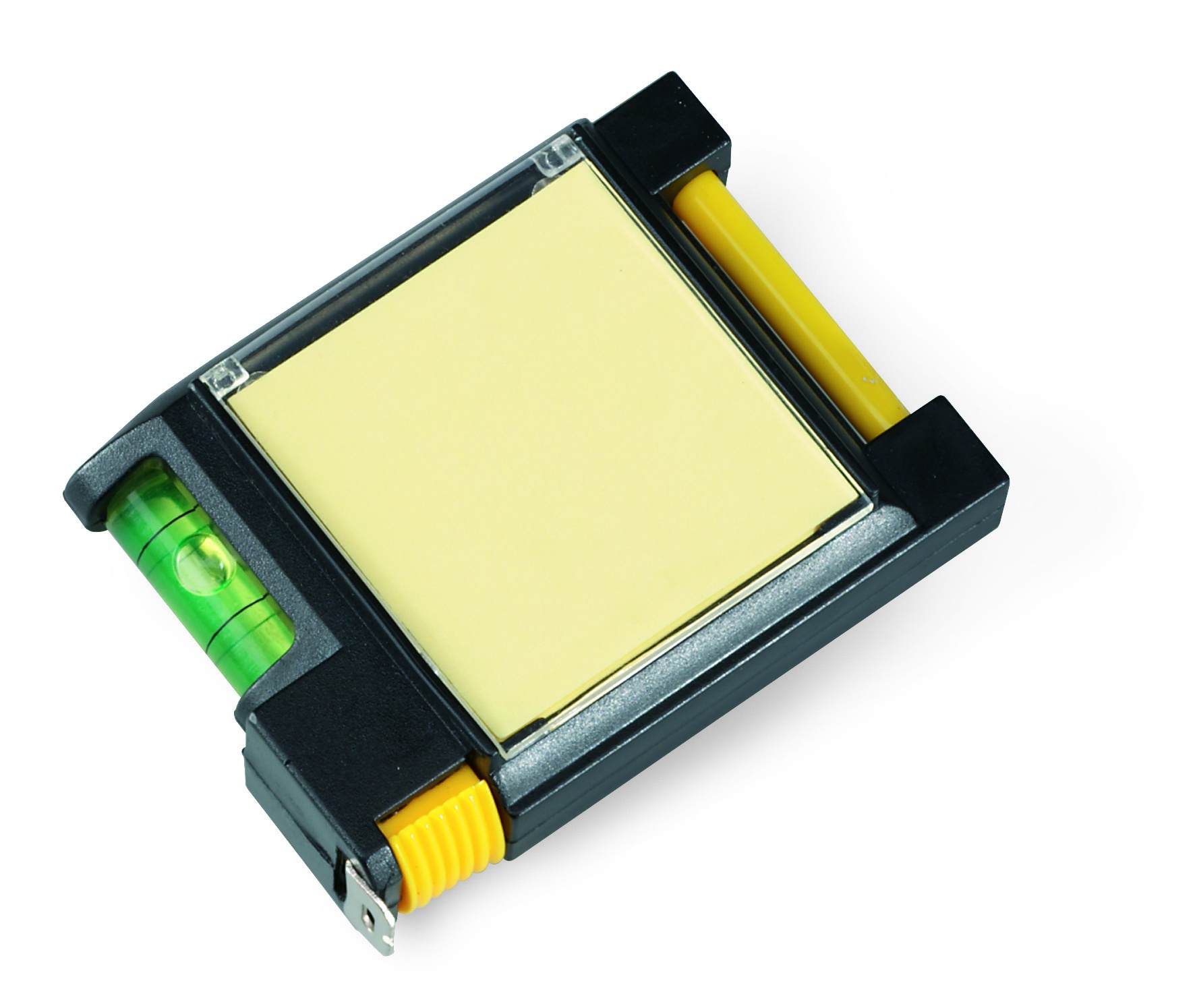 2 m mõõdulint. Kaasas märkmeplokk, pastapliiats ja vesiloodi.