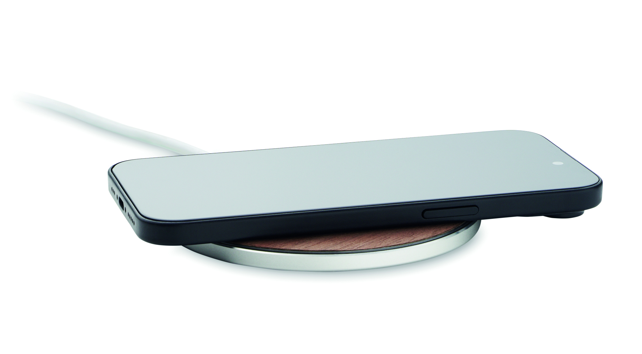 Juhtmeta laadija taaskasutatud alumiiniumist pähklipuidust viimistlusega. Ühendage seade arvutiga, asetage nutitelefon sellele ja laske sellel laadida. Väljund: DC 9V/1,67A (15W). Ühildub kõigi QI-toega seadmetega, nagu uusimad Androidid, iPhone® 8, X ja uuemad.