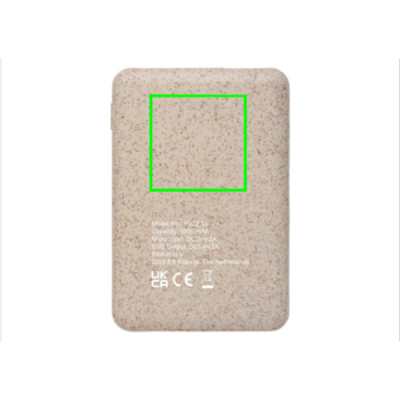 Ülikompaktne 5000 mAh akupank, mis on valmistatud naturaalsest nisukiust (35%), mis on segatud ABS-iga ja mahub nii ideaalselt taskusse, et võite selle kõikjale kaasa võtta. Täielikult laetuna annab see teile piisavalt energiat mobiiltelefoni kuni kolm korda laadimiseks. Akupank sisaldab kauakestvat A-klassi 5000 mAh suure tihedusega liitiumpolümeerakut. Kahe USB-pordiga. Toiteindikaatorid näitavad järelejäänud energiataset, nii et teate alati, millal laadida. Sisend 5V/2A. Väljund USB 1: 5V/2A Väljund USB 2: 5V/1A
