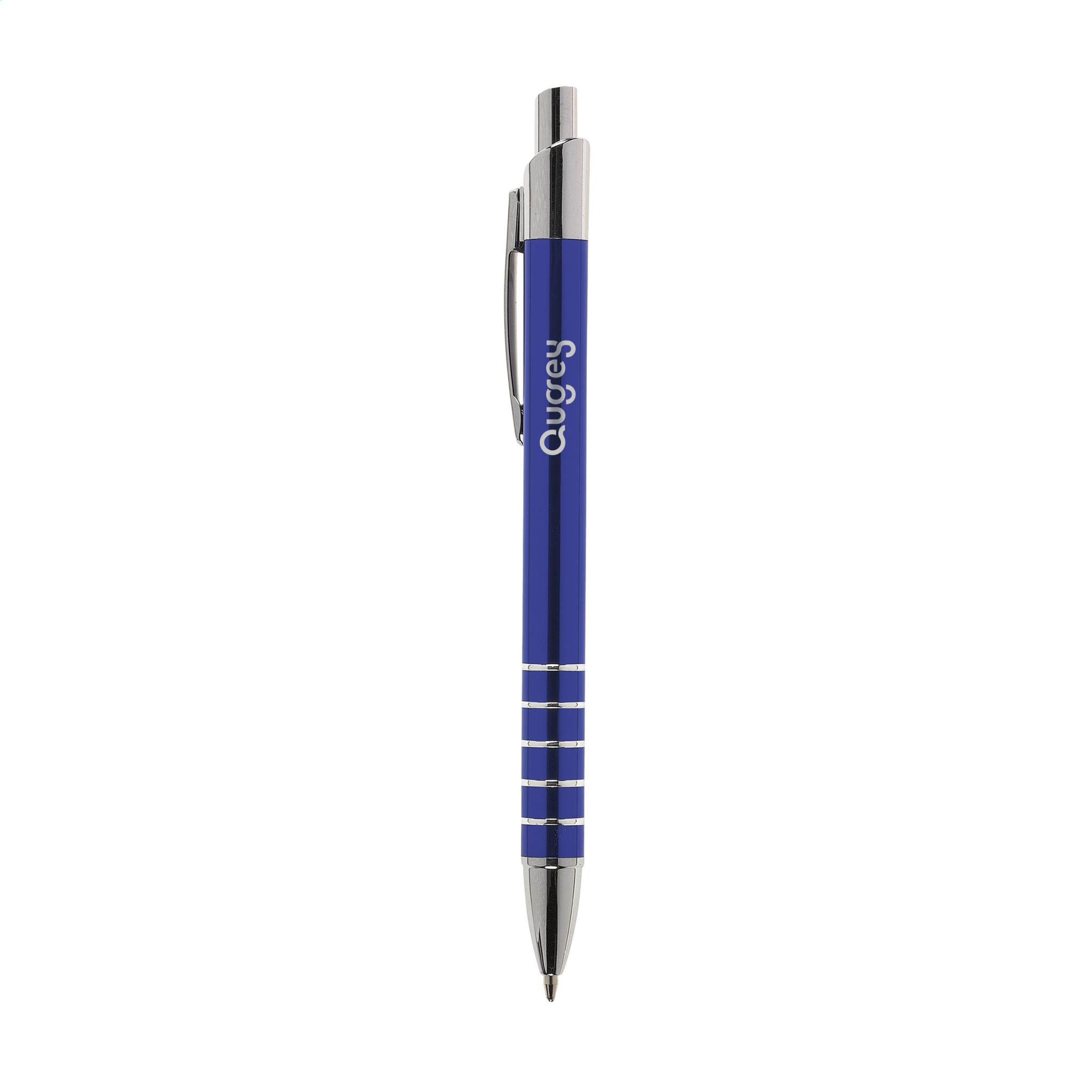 Sinine tint, metallilise välimusega alumiiniumist pastapliiats, metallklambri ja ääristega.