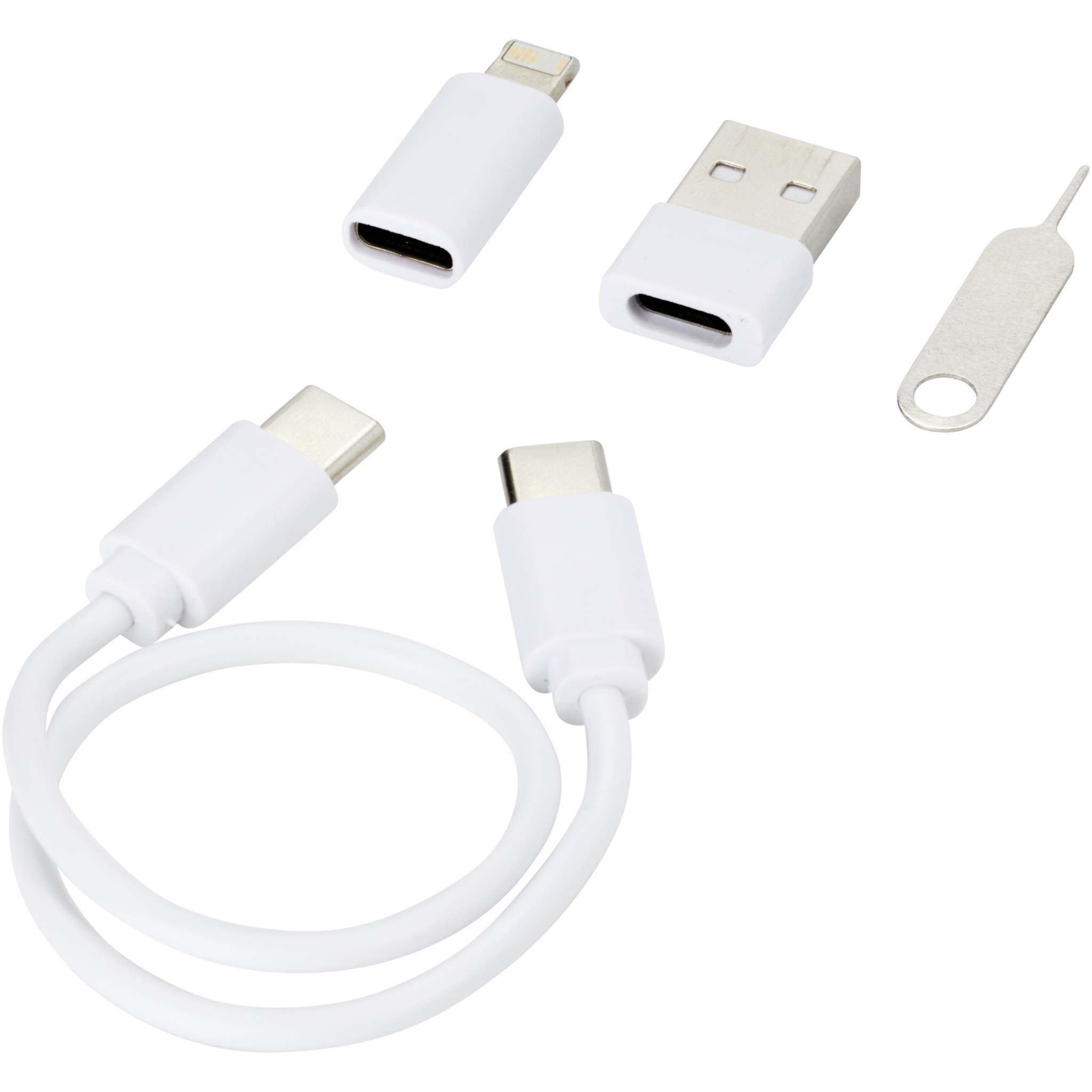 Taaskasutatud plastikust modulaarne andmeedastus- ja laadimiskaabel tarnitakse elegantses hoiukarbis, mis toimib ka telefonialusena. Kaabel pakub mitmeid laadimislahendusi: Type-C ja USB-A sisend ning Type-C/iOS/micro USB väljund. Tänu kõigile neile adapteritele ja pistikutele võimaldab see kaabel laadida enamikku nutitelefone, kaameraid, toitepanku, kõrvaklappe jne. Kaabli maksimaalne väljundvõimsus on 2A. Sisaldab väljutusnõela, mis on mugav igal ajal, kui peate telefoni SIM-kaardi välja võtma. Säilituskastis on ruumi ka micro SD-mälukaardi ja nano-SIM-kaardi hoidmiseks, mis teeb sellest ideaalse reisitarviku. Kaabli pikkus: 26 cm. Tarnitakse 100% taaskasutatud jõupaberist ümbrikus.