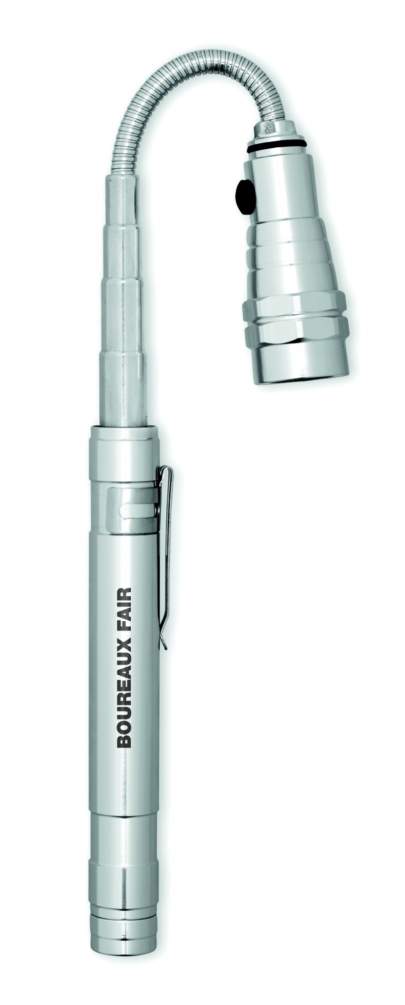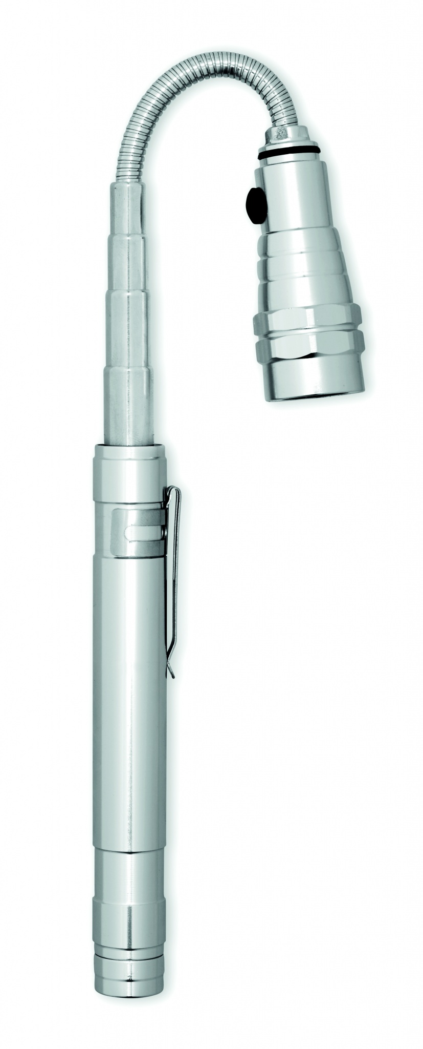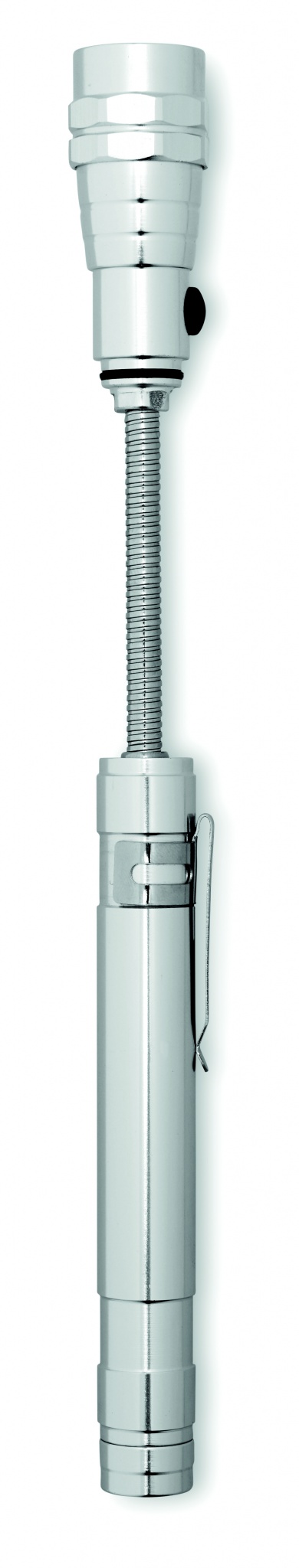 Pikendatav alumiiniumist taskulamp 3 LED-valgusti ja magnetiga peal ja klambriga küljel. Kaasas 4 patareid LR44. Maksimaalne pikkus 57 cm.
