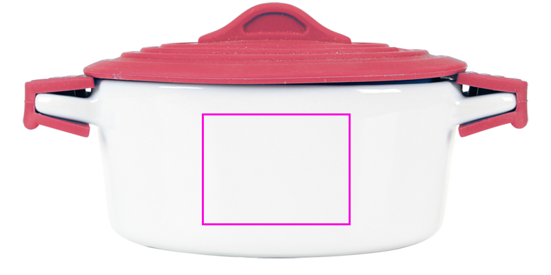 Portselanist pott (sobib nõudepesumasinas, ahjus ja mikrolaineahjus), kuumakindlate silikoonkäepidemetega (kuni 250 °C). Teie logo trükitakse potile keraamilise ülekandega.