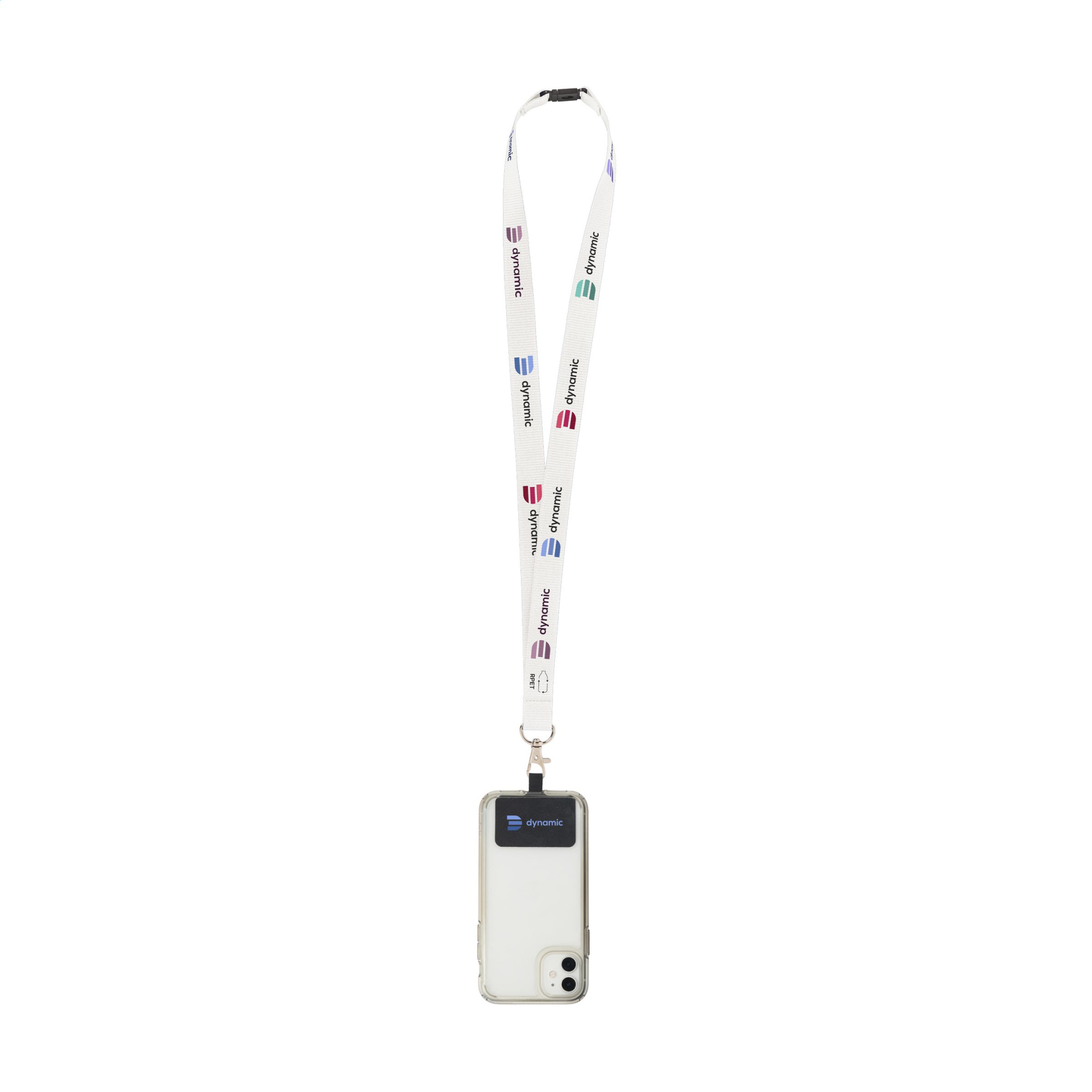 Tugev kootud RPET polüesterpael (valmistatud taaskasutatud PET-pudelitest). Komplektis metallist karabiini, universaalse plaastri ja plastikust turvalukuga. Plaaster võimaldab kinnitada nutitelefoni kaelapaela külge. Selle kombinatsiooniga saate oma nutitelefoni turvaliselt kaelas kanda. See tagab, et teil on telefon kiiresti käepärast ning saate hoida oma käed ja riidetaskud vabad. See plaaster ühildub enamiku nutitelefonide ja ümbriste kombinatsioonidega, kuid mitte avatud põhjaga ümbristega. Süsteem on loodud nii, et teie telefoni laadimisport ei oleks blokeeritud isegi siis, kui see on kinnitatud kaelapaela külge. Kaasa arvatud täisvärviline sublimatsioontrükk kaelapaelal. Valmistatud Euroopas.