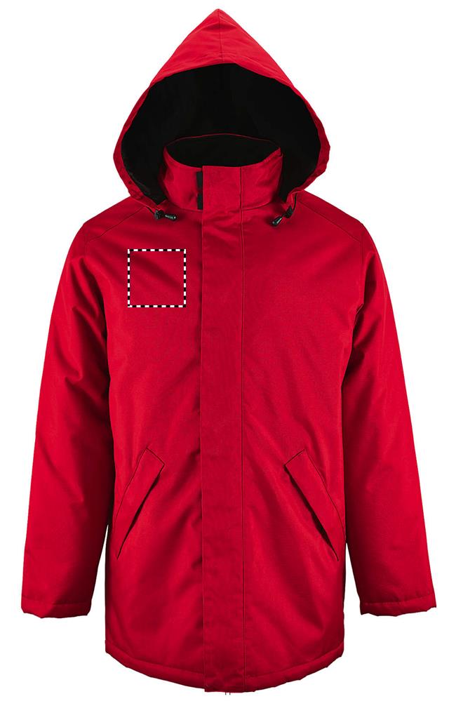 SOL'S ROBYN, polsterdatud voodriga unisex jope, 100% polüester – pvc kate, vooder <(>&<)> polster: 100% polüester oxford 300d, lukuga avamine kahekordse liuguriga ja isehaarduvate rihmade ja peidetud trukkidega plokk, kapuuts krae sees, krae sees fliisvoodriga, 2 klapiga välist lukuga taskut, 1 sisetasku, manseti kinnitused. Suuruste sobivuse kohta vaadake tootedokumentatsiooni jaotises olevat suurustabelit.