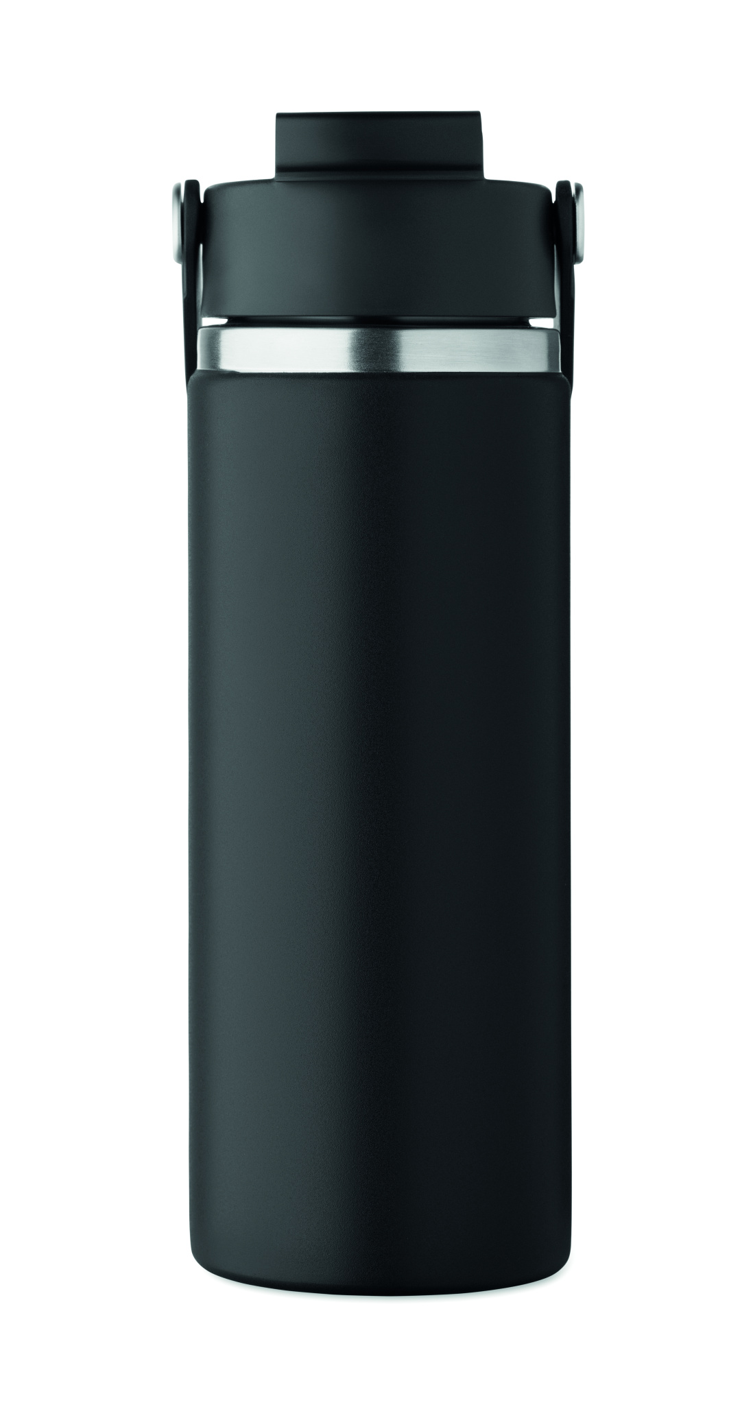 Topeltseinaga joogipudel taaskasutatud roostevabast terasest (90% taaskasutatud roostevaba teras ja 10% roostevaba teras), millel on kombineeritud kõrs ja sangaga kaas. Lekkekindel. Maht: 500 ml.