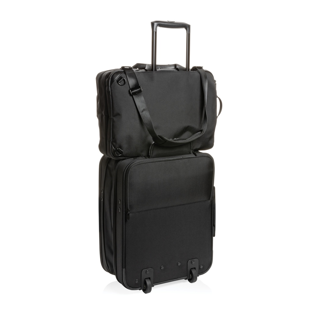 Maksimaalne funktsioon minimalistlikul kujul – Swiss Peak 2-in 1 juhi sülearvutikott on nutikas kahesuunaline kandekott, mis ühendab endas parimad portfelli ja seljakotid ühes. Seljakoti-portfelli hübriid manööverdab sama hõlpsalt nagu portfell või seljakott ning lülitub nende vahel. Täis funktsioone, sisaldab 2 esitaskut, mitu sisetaskut, eraldi polsterdatud 15,6-tolline sülearvuti sahtel ja ruumikas sahtel ööbimiseks. See mitmekülgne kaaslane koos peidetud pagasiümbrisega käsipagasi jaoks on kõik-ühes lahendus kõikideks teie reisideks. AWARE™ märgistusega, mis kinnitab taaskasutatud materjalide ehtsat kasutamist. Igas kotis on taaskasutatud 49,3 PET-pudelit. 2% iga müüdud Aware™-i toote tulust annetatakse veebisaidile Water.org.