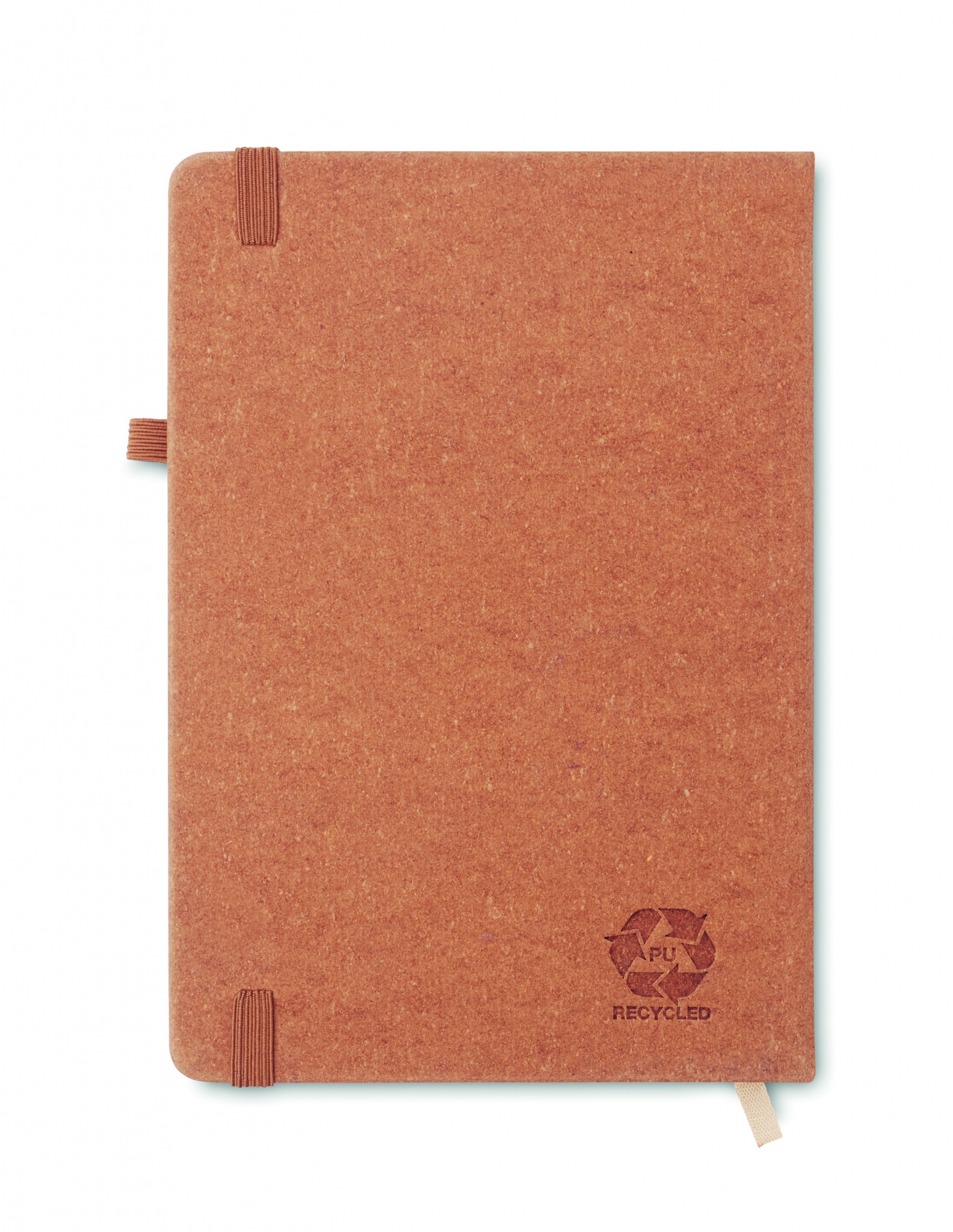 A5-formaadis sülearvuti 70% taaskasutatud nahast ja 30% lateksist PU kaanega. Casebound. 160 joonega lehekülge taaskasutatud paber (80 lehte). Sobiv elastne sulgemisrihm ja pliiatsihoidja.