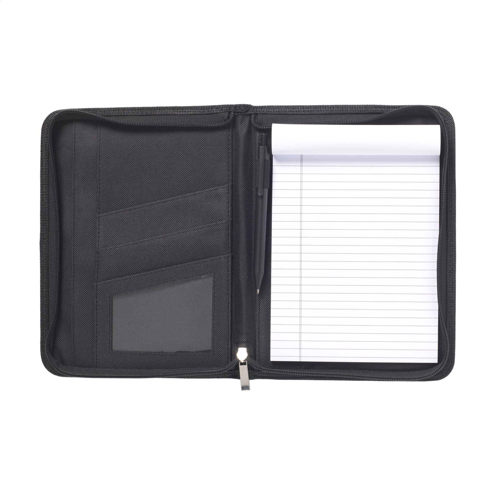 Konverentsi/dokumentide kaust valmistatud peenest liimitud nahast, A5 formaadis. Erinevate taskute ja tõmblukuga. Sealhulgas kirjutusplokk ja pastapliiats. Iga ese on eraldi karbis.