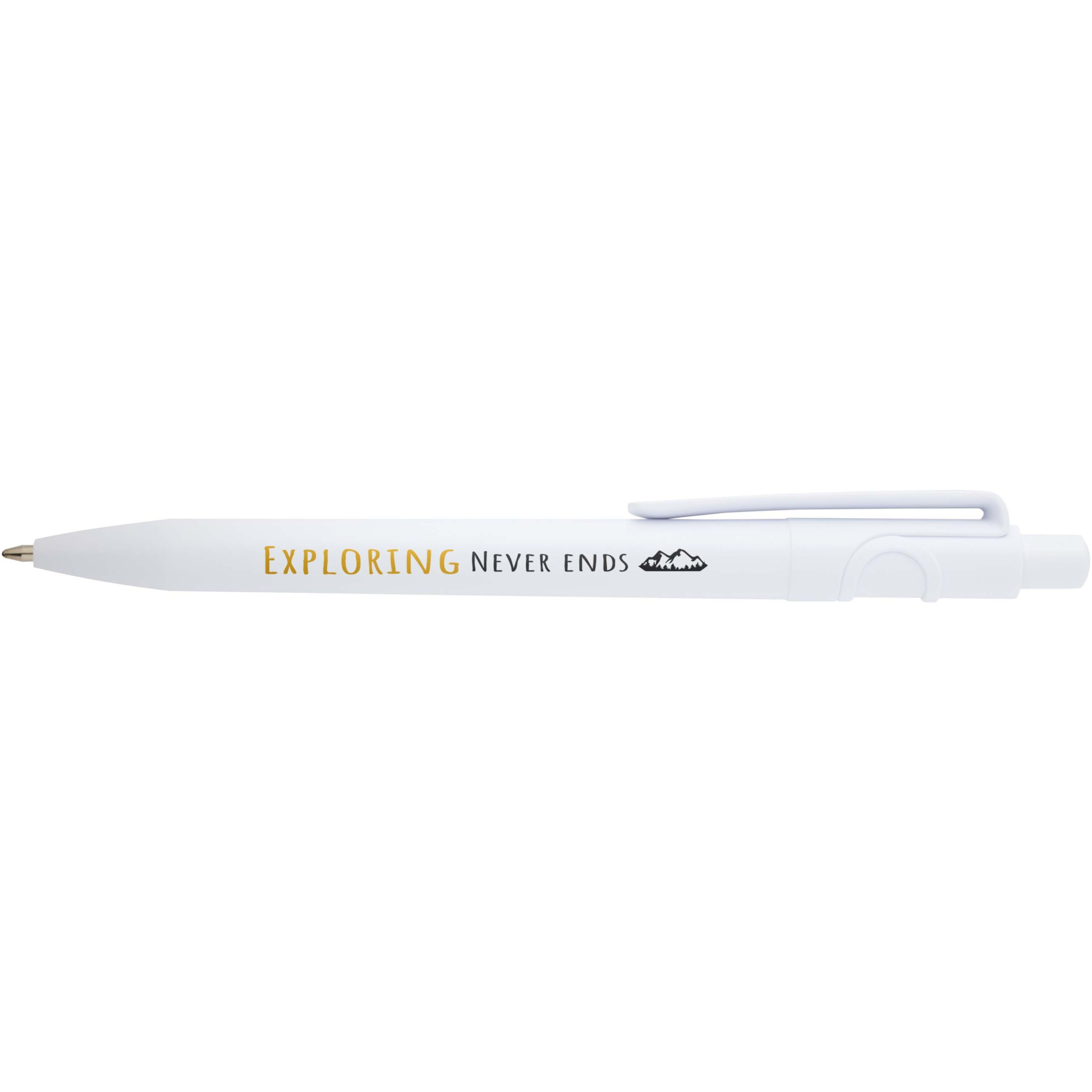 Unica taaskasutatud plastist pastapliiats (must tint), Valge