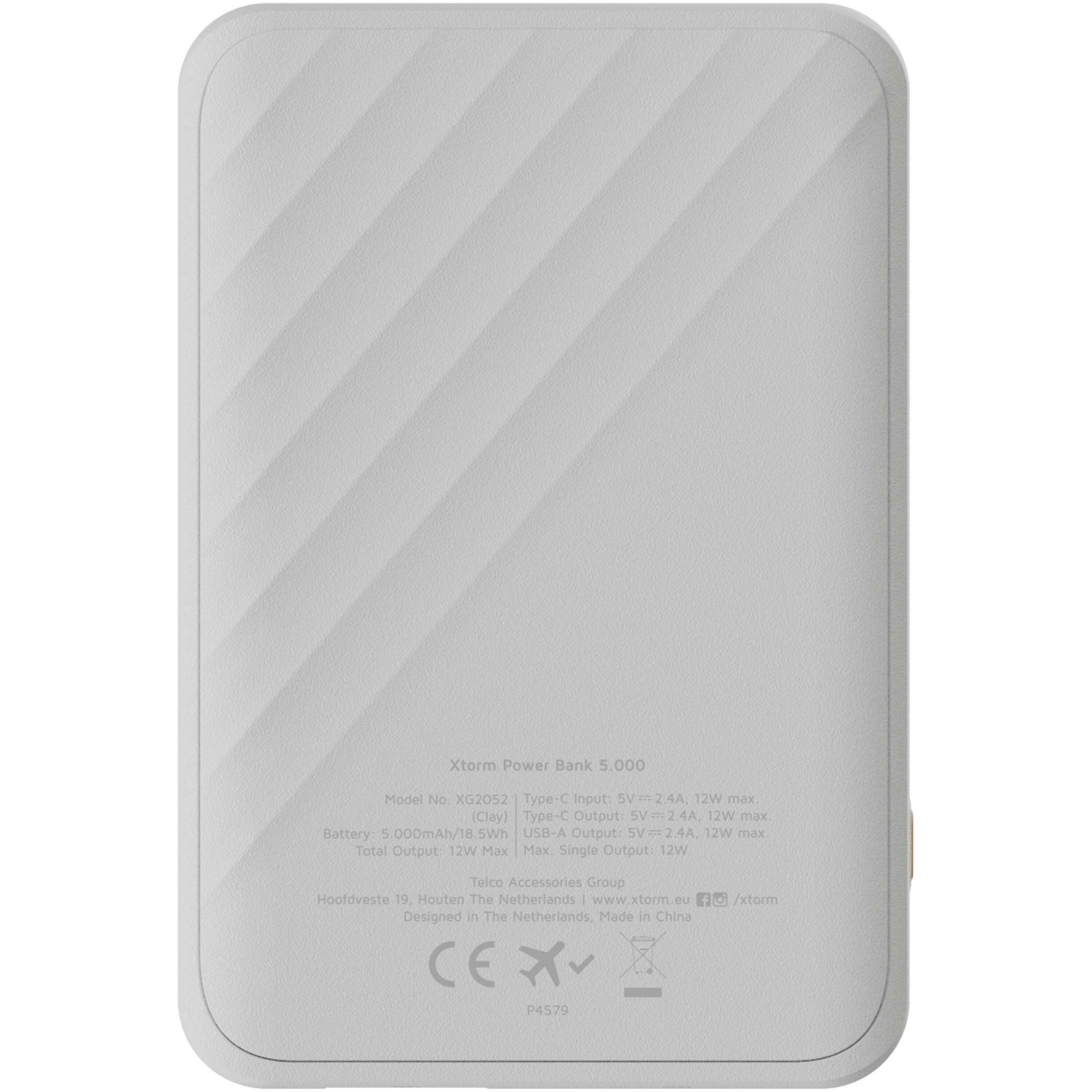 Väike ja kompaktne 5000 mAh akupank, mis tagab nutitelefoni või kõrvaklappide jaoks vähemalt ühe täislaadimise. Toitepangal on 2 USB-porti ja see laeb tänu Xtormi 12 W FastCharge tehnoloogiale eriti kiiresti.