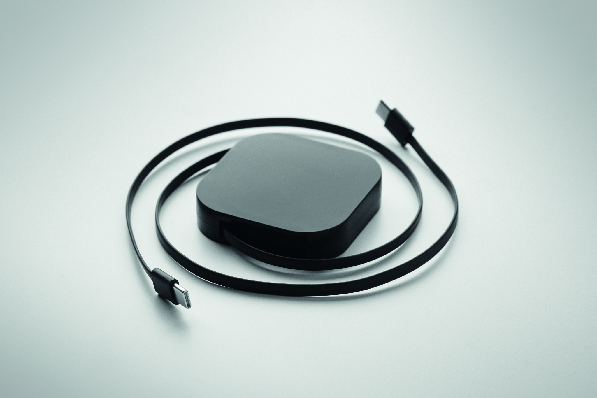100 W:n sisäänvedettävä lataus- ja datakaapeli. Sisältää puhelinpidikkeen. PVC-kaapeli ja ABS-kuori virransyöttöä ja tiedonsiirtoa varten (480 Mbps). C-tyypin ja C-tyypin liitäntä.