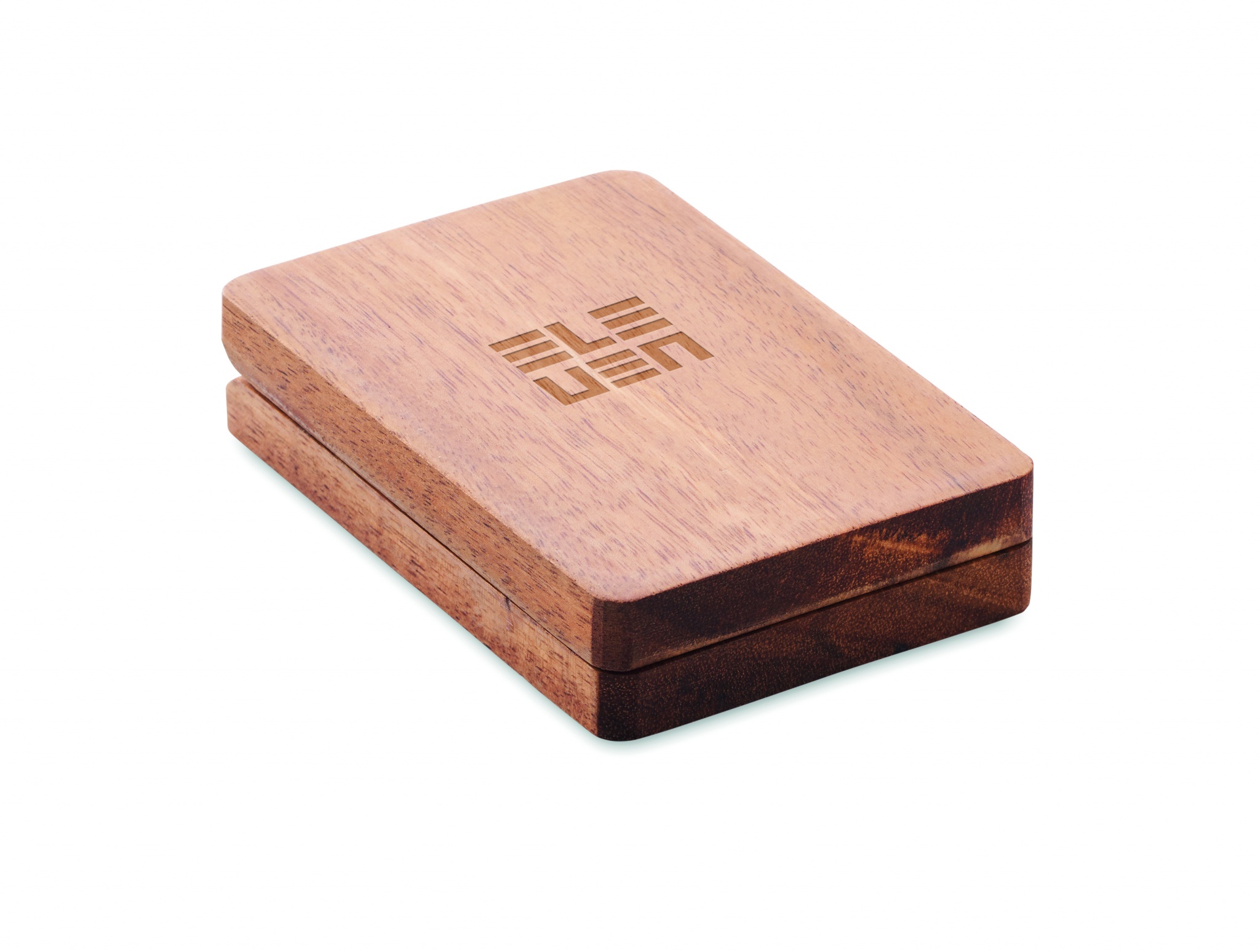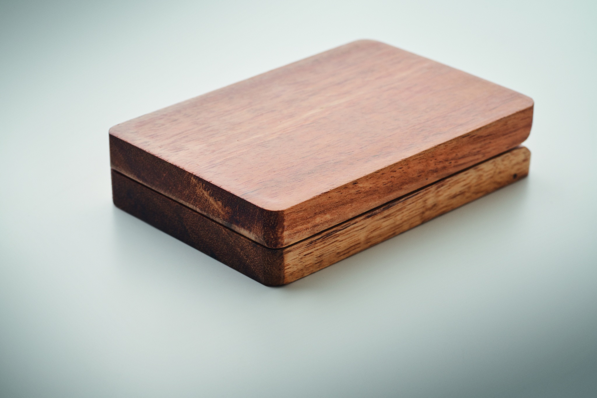 3-in-1-latauskaapeli eri liittimillä. Toimitetaan akaasiapuulaatikossa. C-to C-tyypin kaapeli, C-USB-A, C-micro-B, C-liittimiin.