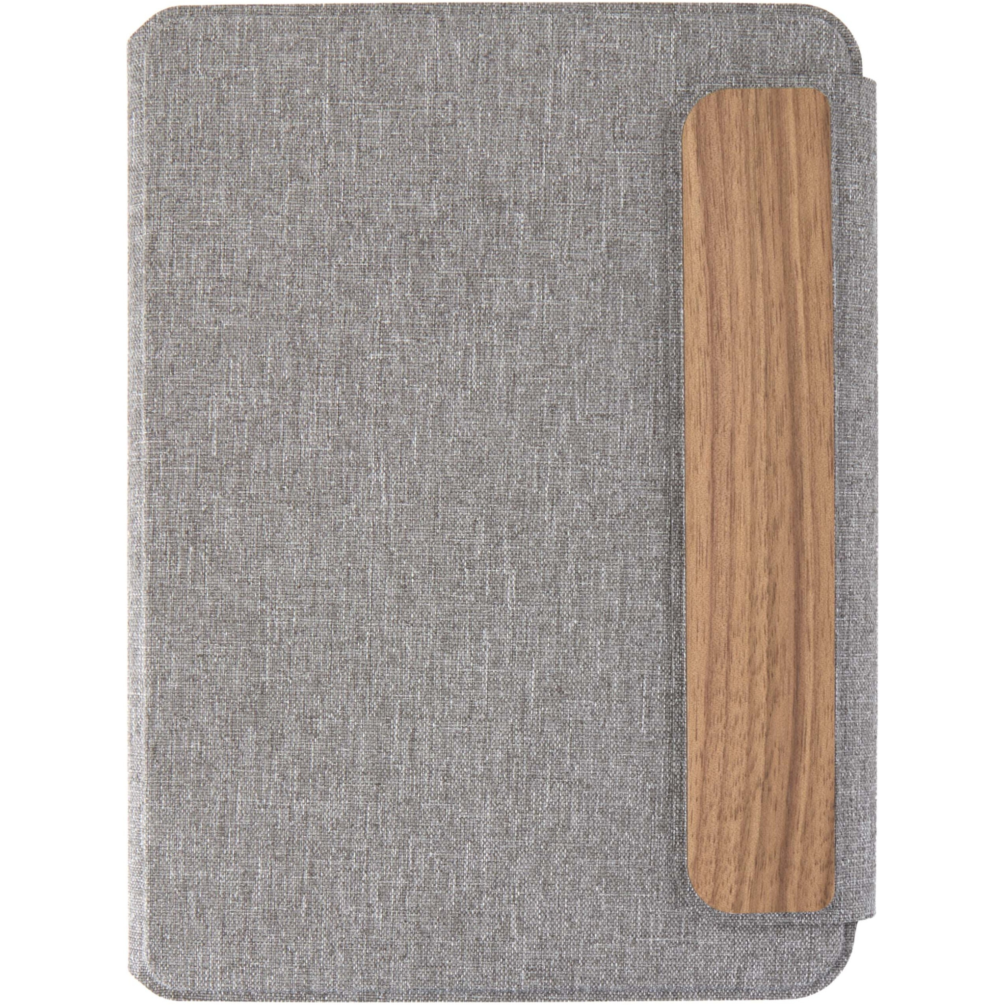 A5-kokoinen Andean-portfolio on valmistettu osittain RCS-sertifioidusta kierrätetystä polyesteristä, mikä tarjoaa kestävämmän vaihtoehdon vähentämällä kokonaan uusien materiaalien käyttöä. Tyylikkäissä, harmaissa, kovissa kansissa on pyöristetyt kulmat, ja ne on tehty tarkkuushitsaustekniikalla. Portfolio kiinnitetään magneettisella sulkimella, jota korostava hienostunut, pähkinäpuinen yksityiskohta lisää modernia ja hienostunutta ilmettä. Sisäpuolella on irrotettava pehmeäkantinen muistikirja, jossa on 64 kermanväristä, viivoitettua arkkia. Muistikirja on valmistettu vastuullisesti hankitusta 80 g/m²:n paperista. Toimitetaan voimapaperin värisessä paperitaskussa.