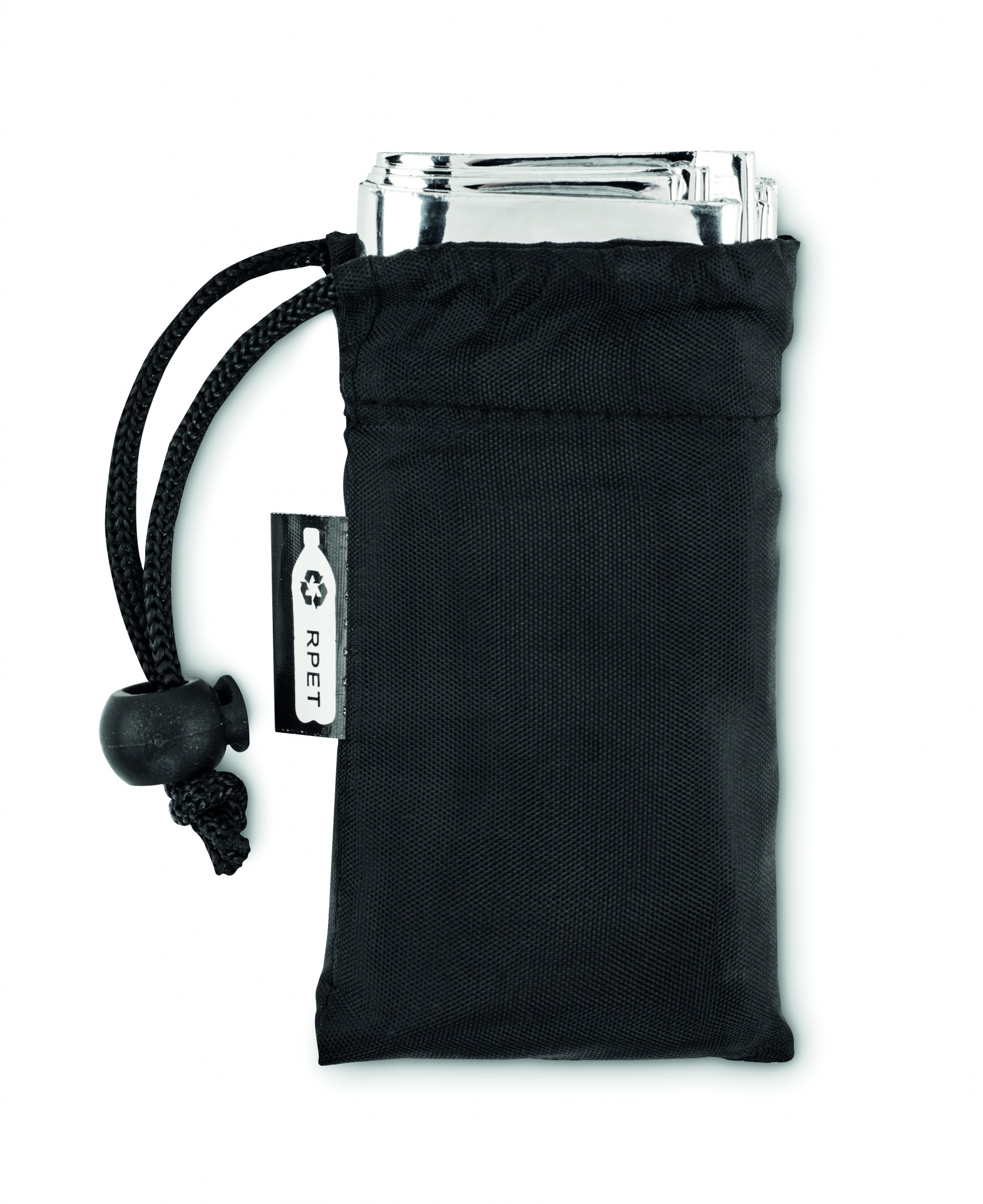 Avaruuslakana RPET-polyesteristä valmistetussa vetoketjupussissa. Peitteen koko 130 x 210 cm, paino 1,5 kg.